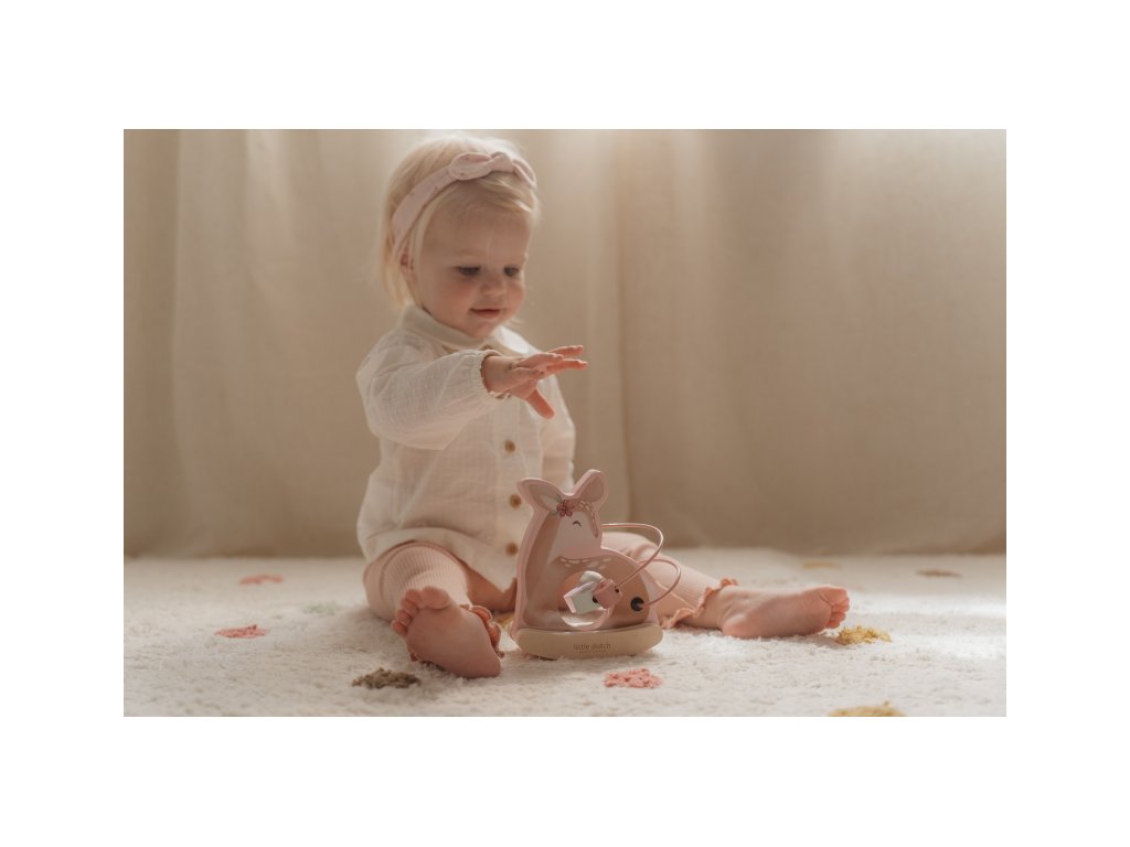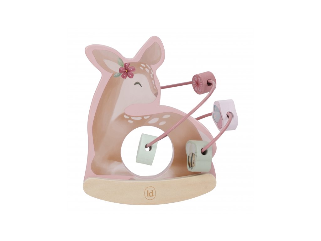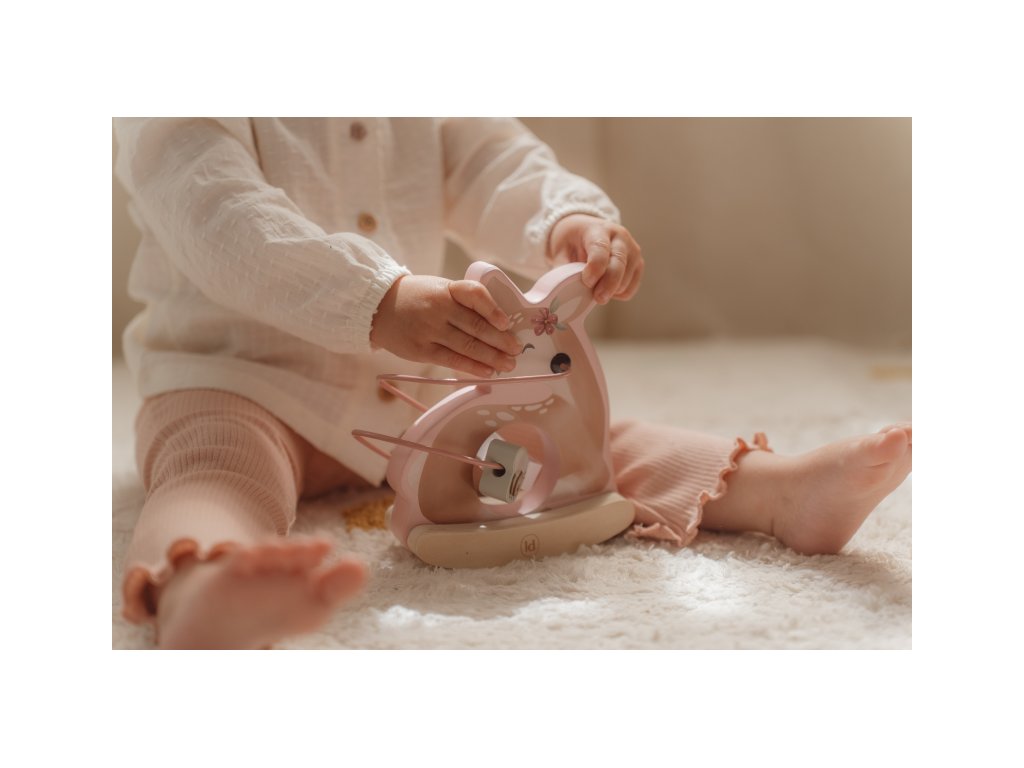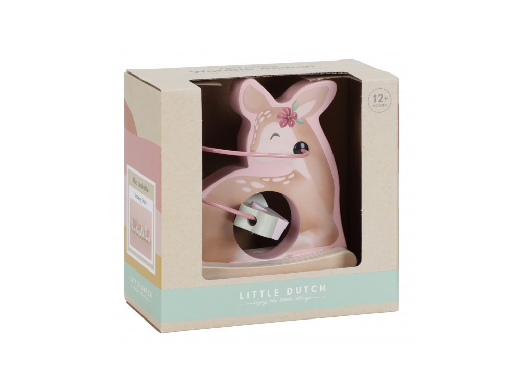 Dřevěná hračka v podobě něžné srnky se po postavení na podlahu či stůl jemně houpe a přitom se kolem ní na spirále pohybují posuvné dřevěné korálky s potiskem včelky, motýla, kytičky a lístku. Hračka je ideální pro rozvoj koordinace ruka / oko dítěte slouží i jako krásná dekorace v dětském pokoji. Hračka je součástí designové kolekce hraček a doplňků Little Dutch Fairy Garden inspirované životem na zahradě. Vyrobeno z dřeva certifikovaného FSC. Rozměry: 13,7 x 8,5 x 15,3 cm Vhodné pro děti od 12 měsíců.Doplňkové parametry