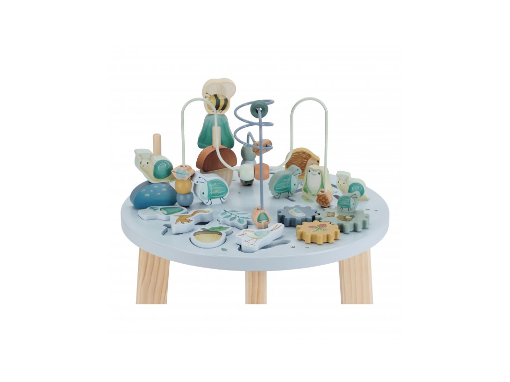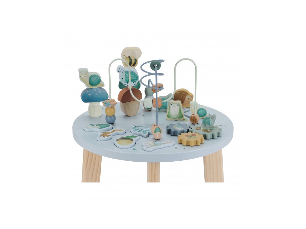 Dřevěný multifunkční stolek v krásném a vysoce kvalitním provedení nabízí vašemu dítěti množství různorodých aktivit, které dítě zabaví a zároveň pomáhají rozvíjet jeho jemnou motoriku i jednotlivé smysly. Lákat dítě ke zkoumání budou pohyblivé, posuvné i odnímatelné dřevěné díly v podobě ježka, šneka, žáby, houbiček a dalších motivů ze života v lese. Díky stabilnímu dřevěnému provedení je stolek vhodný i pro děti, které hledají oporu při prvních krůčcích. Stolek je součástí designové kolekce hraček a doplňků Little Dutch Forest Friends inspirované životem v lese. Vyrobeno z dřeva certifikovaného FSC. Rozměry: 39 x 39 x 54 cm Vhodné pro děti od 12 měsíců.Doplňkové parametry