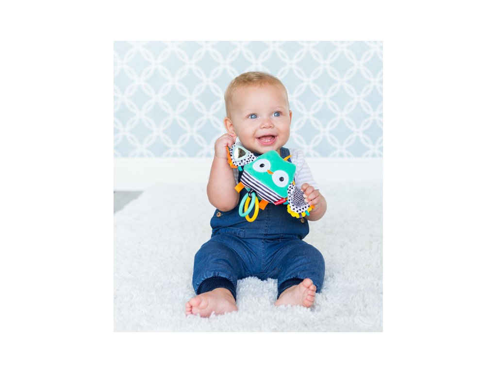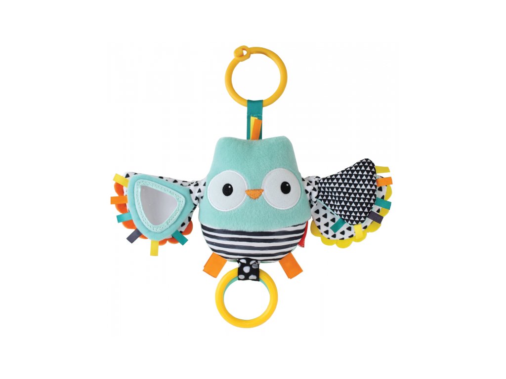 Originální hračka, která zabaví děti i jejich rodiče. Zatáhněte za kroužek a sledujte spolu s dítětem, jak sova vibruje a mává křídly! Pozornost dítěte upoutají i výrazné barvy a různorodé textury ke zkoumání včetně bezpečného zrcátka. Vhodné pro děti od narození.Doplňkové parametry