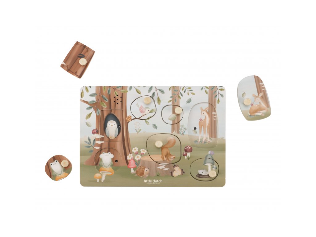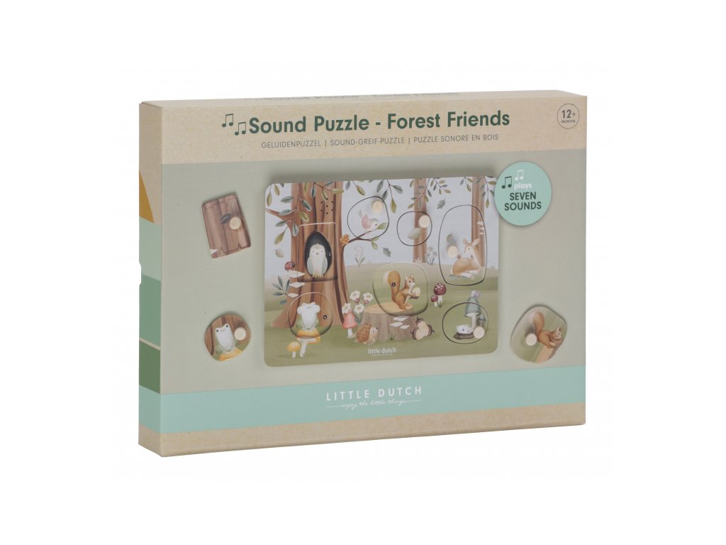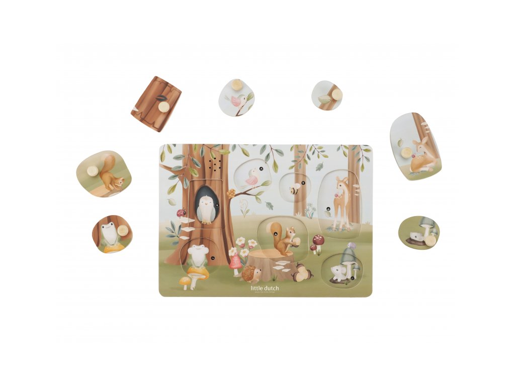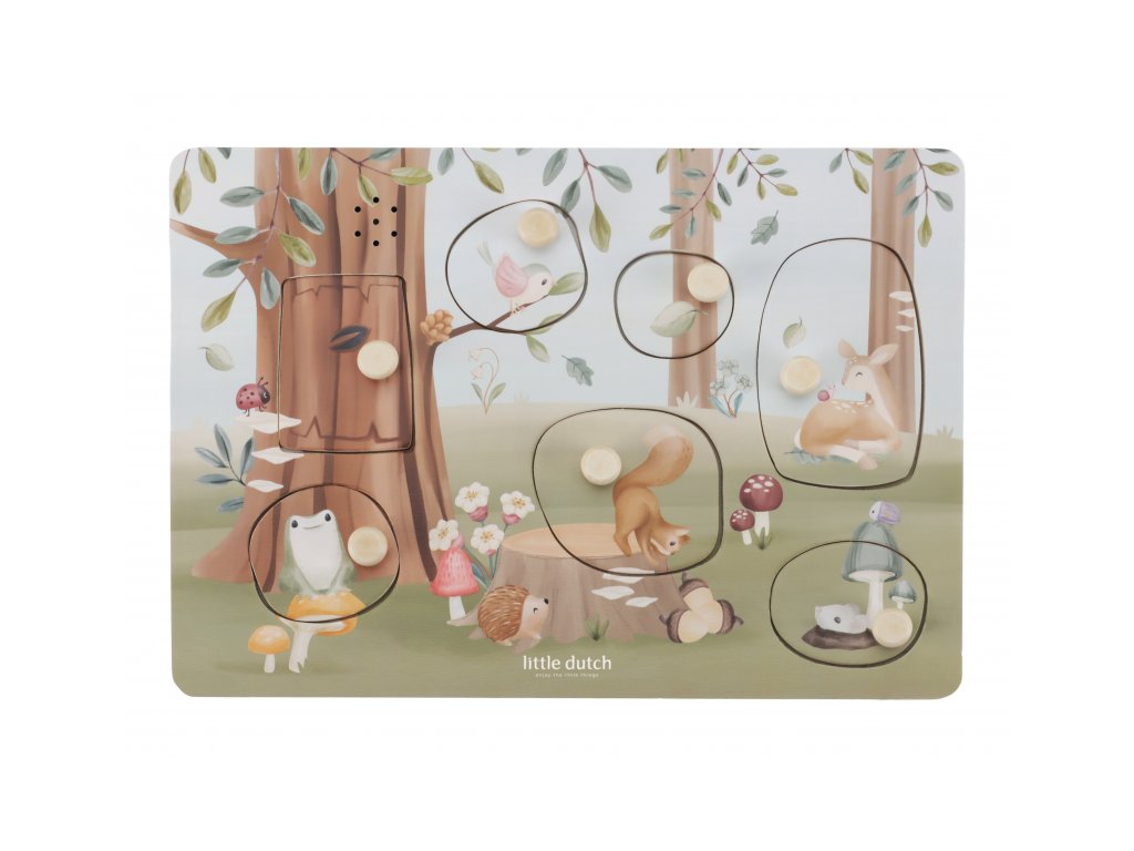 Poznávejte spolu s vaším dítětem, jaká zvířata žijí v lese a jaké zvuky vydávají. Když dítě vloží správný tvar do otvoru na herní desce, ozve se např. hlas ptáčka či žáby. Puzzle hra v dřevěném provedení s krásnými obrázky nabízí 7 různých vkládacích dílů. Hračka je součástí designové kolekce hraček a doplňků Little Dutch Forest Friends inspirované životem v lese. Rozměry: 21 x 30 x 2,4 cm Baterie 2xAAA nejsou součástí balení. Vhodné pro děti od 12 měsíců.Doplňkové parametry