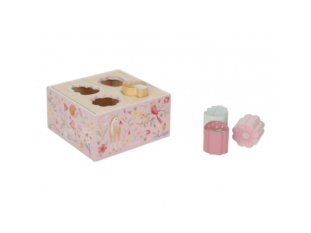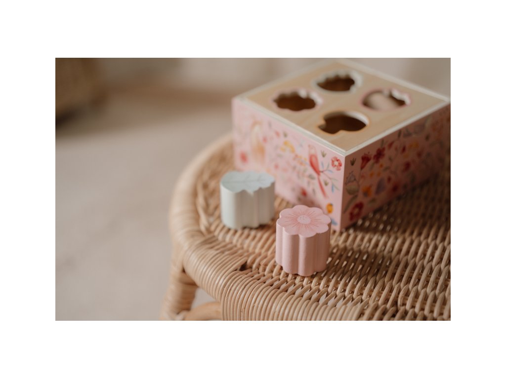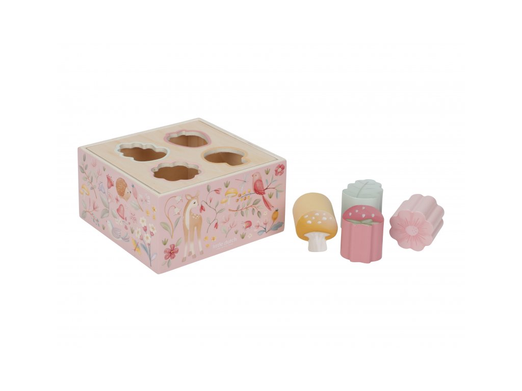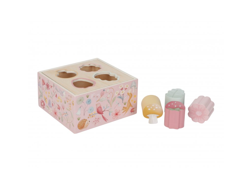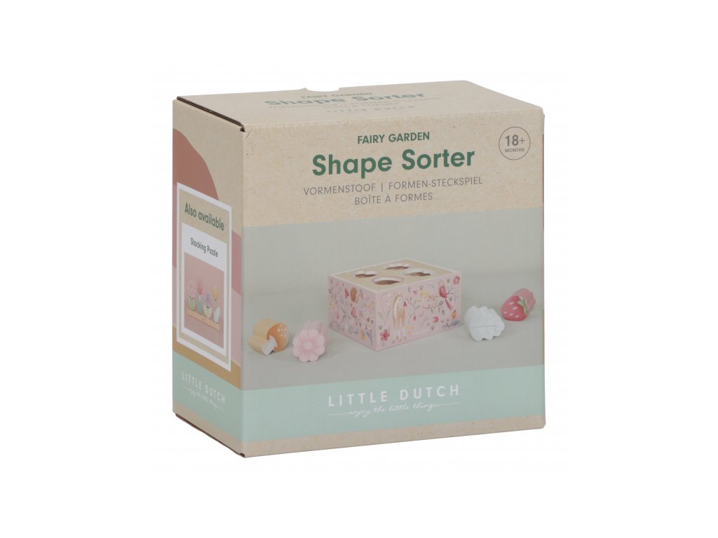 Vkládačka dřevěných tvarů učí děti kreativním zpsůobem rozpoznávat tvary a barvy a zdokonalit svou koordinaci rukou a očí. Malé ručičky snadno uchopí kostky různých tvarů a pak je zatlačí do správného otvoru. Krabička s krásnými ilustracemi motivů ze života na zahradě je vyrobena z pevného dřeva. Klasická vzdělávací a zároveň zábavná hračka. Vkládačka je součástí designové kolekce hraček a doplňků Little Dutch Fairy Garden inspirované životem na zahradě. Vyrobeno z dřeva certifikovaného FSC. Rozměry: 12,8 x 12,8 x 12,8 cm Vhodné pro děti od 18 měsíců.Doplňkové parametry