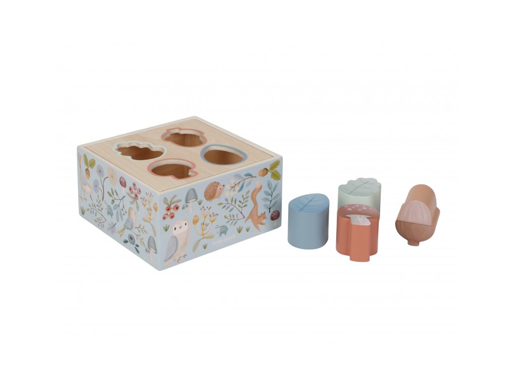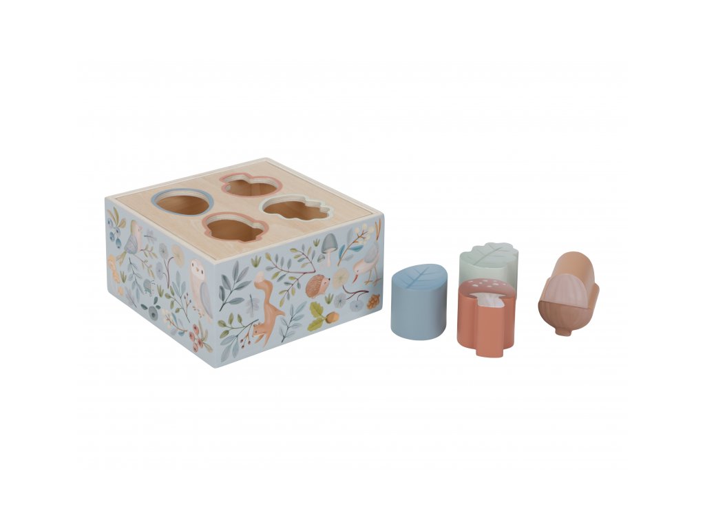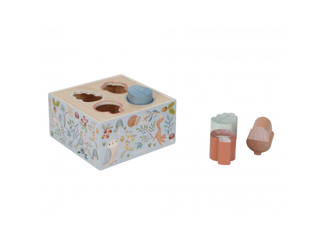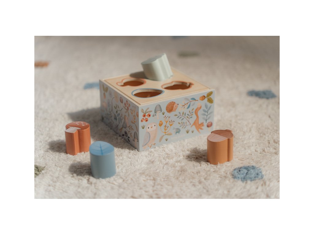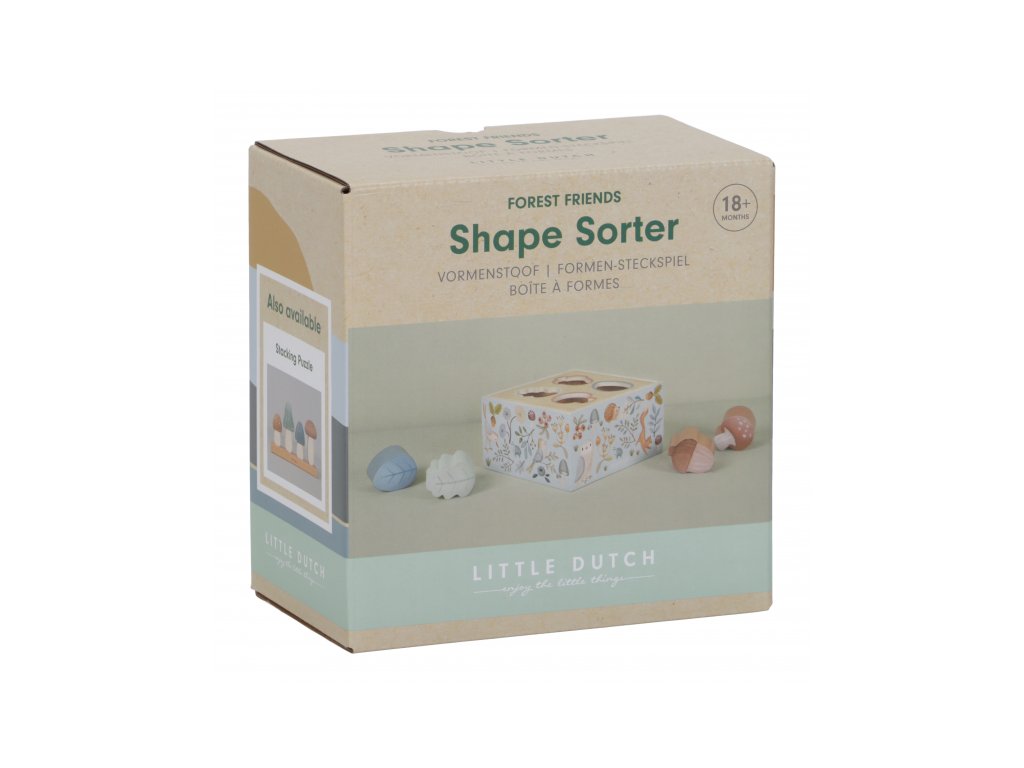 Vkládačka dřevěných tvarů učí děti kreativním zpsůobem rozpoznávat tvary a barvy a zdokonalit svou koordinaci rukou a očí. Malé ručičky snadno uchopí kostky různých tvarů a pak je zatlačí do správného otvoru. Krabička s krásnými ilustracemi motivů ze života v lese je vyrobena z pevného dřeva. Klasická vzdělávací a zároveň zábavná hračka. Vkládačka je součástí designové kolekce hraček a doplňků Little Dutch Forest Friends inspirované životem v lese. Vyrobeno z dřeva certifikovaného FSC. Rozměry: 12,8 x 12,8 x 12,8 cm Vhodné pro děti od 18 měsíců.Doplňkové parametry