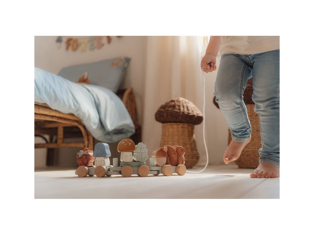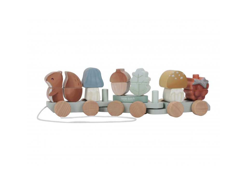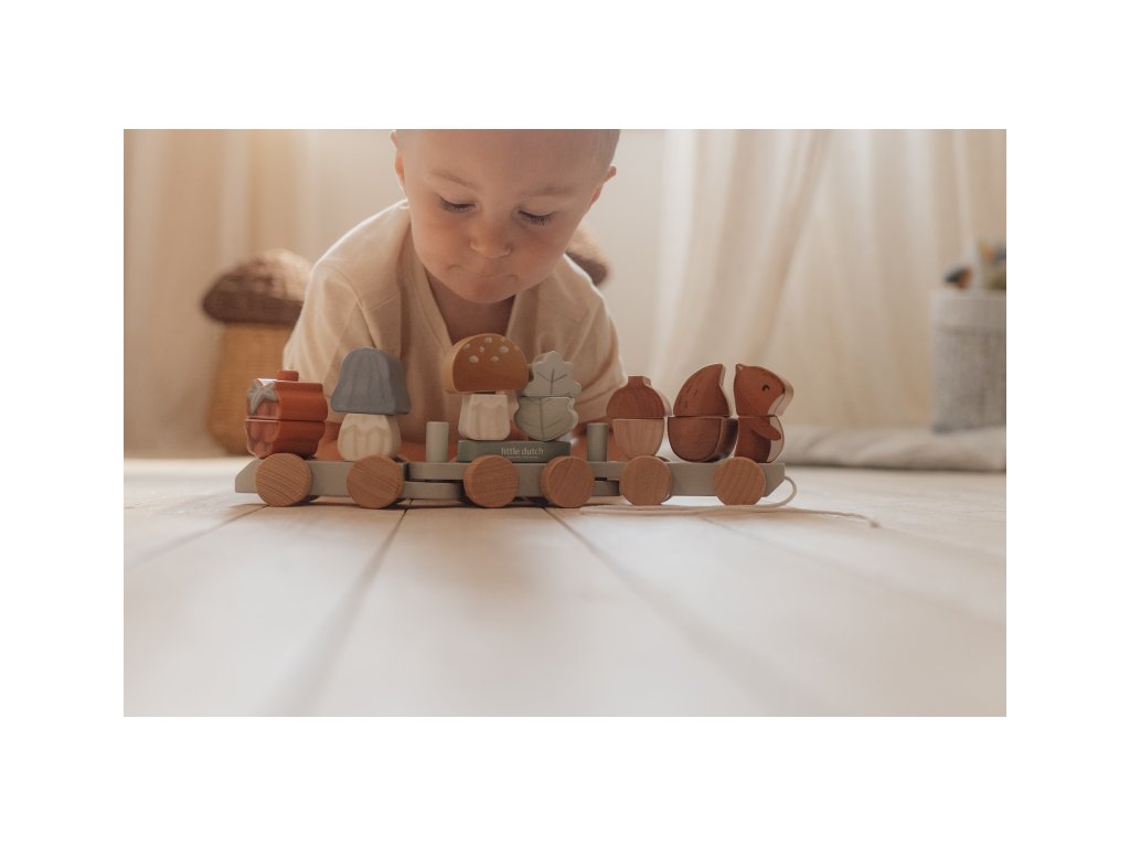 Originální dřevěný vláček z dílny Little Dutch je tvořen kostkami různých barev ve tvaru veverky, hub, maliny a listu. Kombinováním kostek si vaše dítě může sestavovat různé varianty vagónů dle své fantazie. Vláček zajistí vašemu dítěti spoustu zábavy a může sloužit i jako krásná dekorace v dětském pokoji. Hračka je součástí designové kolekce hraček a doplňků Little Dutch Forest Friends inspirované životem v lese. Vyrobeno z dřeva certifikovaného FSC. Rozměry: 38,2 x 7 x 10,6 cm Vhodné pro děti od 18 měsíců.Doplňkové parametry