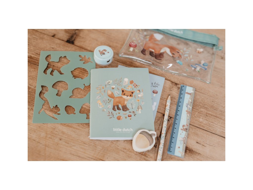 Sada výtvarných potřeb v krásném provedení s motivy života v lese obsahuje průhledné pouzdro na zip, sešit, samolepky, pravítko, gumu, ořezávátko a šablony. Sada je součástí designové kolekce hraček a doplňků Little Dutch Forest Friends inspirované životem v lese. Vhodné pro děti od 3 let.Doplňkové parametry