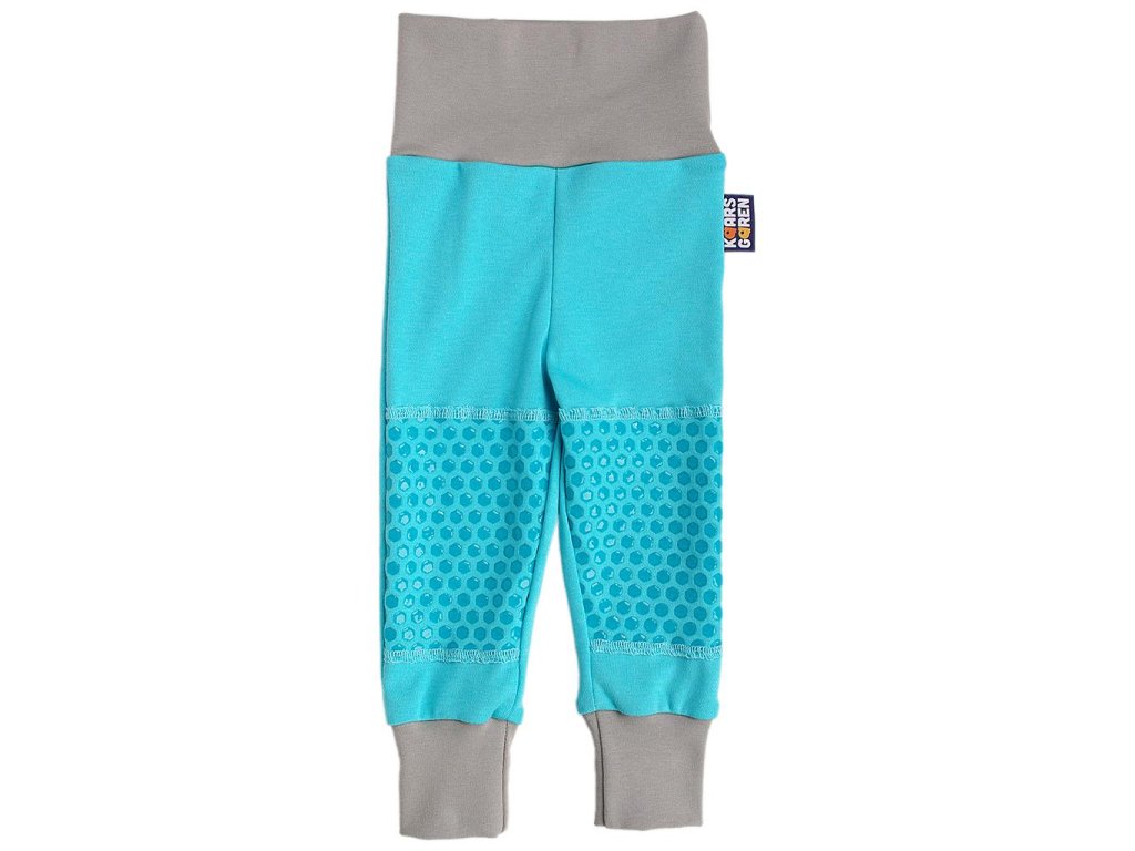 Kalhoty s protiskluzem bio tyrkysové šedý lem velikost 74