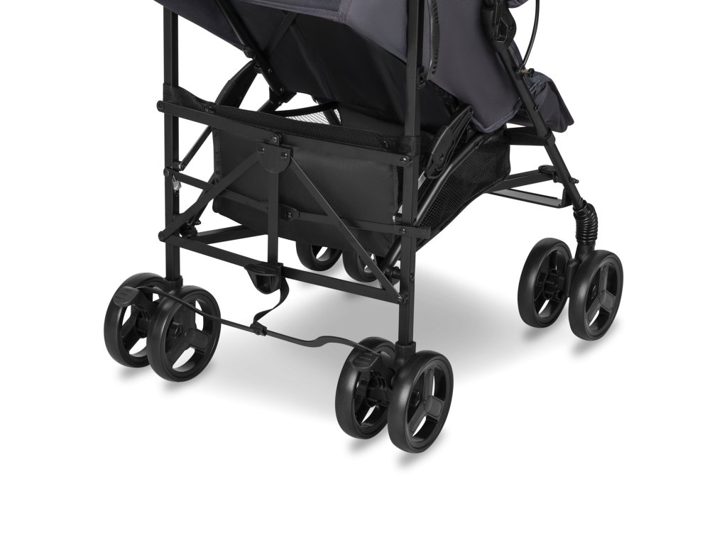 - Pevná a lehká konstrukce - díky tomu, že je vyroben z nejkvalitnější oceli, se kočárek nedeformuje a váží pouhých 7 kg.