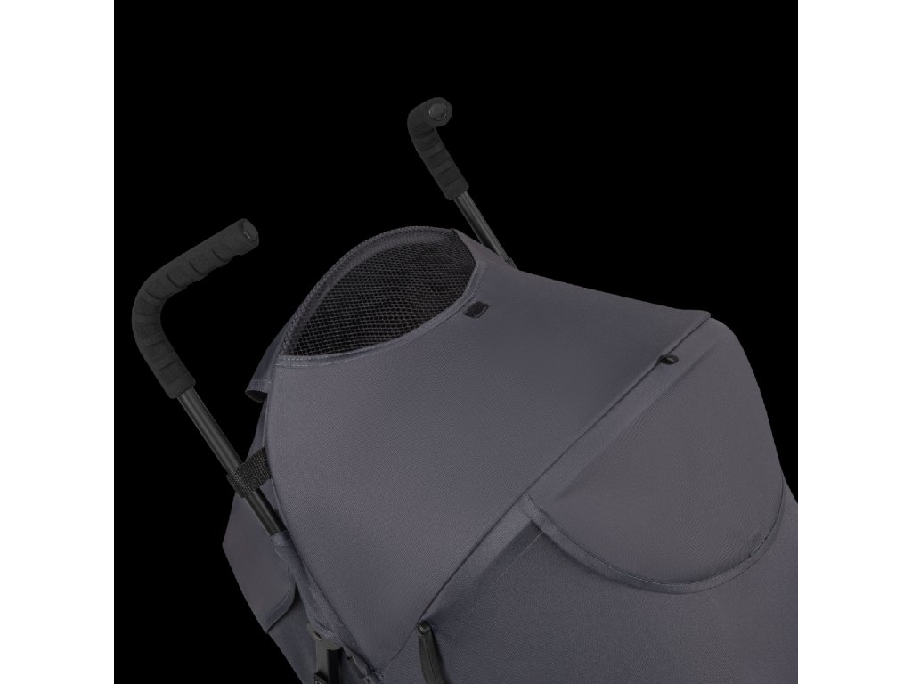 Dvoustupňová stříška poskytuje ochranu před slunečním zářením, deštěm a větrem. Okénko na suchý zip poskytuje vynikající ventilaci a slouží jako hledáček pro rodiče.