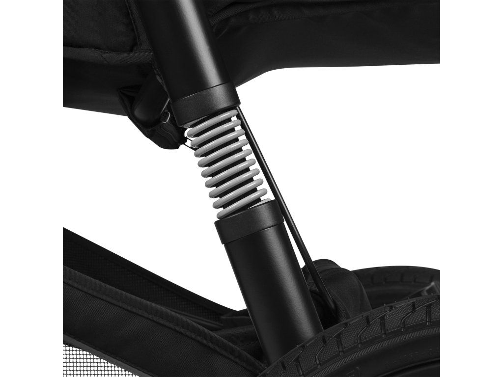 Kočárek je plně odpružený zepředu dozadu, takže se skvěle vyrovnává s překážkami. Pohodlné polstrování rámu kočárku umožňuje svobodnou procházku i v náročnějším terénu, na pláži nebo při sportu.