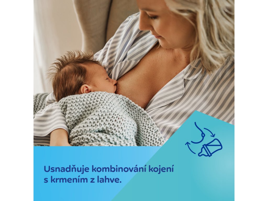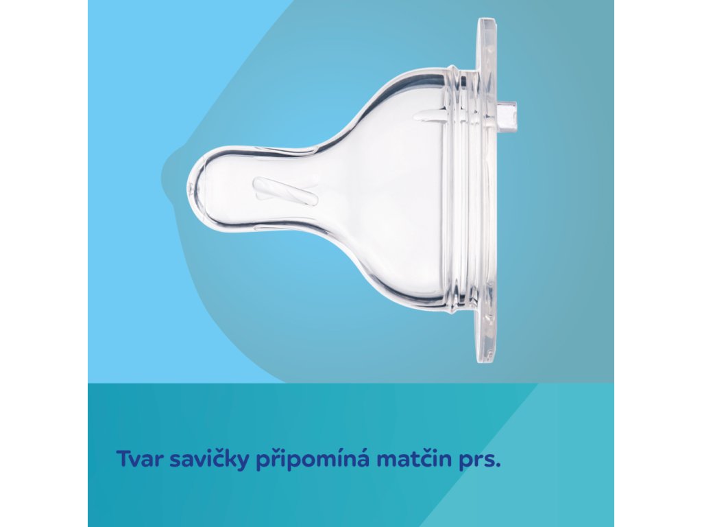 Silikonová savička je měkká, bez chuti a zápachu – usnadňuje dítěti přijetí lahvičky.