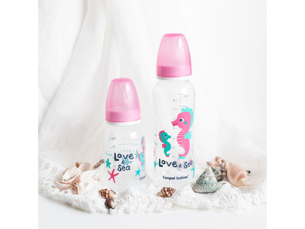 Nepraská, je bezpečná, lehká, praktická a barevná. Lahev je potištěna roztomilými motivy zvířátek z oblíbené kolekce LOVE&SEA. Splňuje nejvyšší požadavky kvality. Ve standardním provedení obsahuje silikonovou kulatou savičku s pomalým průtokem.