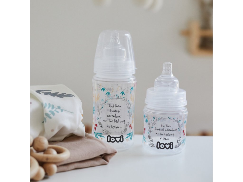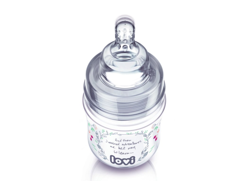 Láhev bezpečná při kojení v novém moderním designu kolekce Indian Summer, který sleduje současné trendy. Umožňuje kombinaci krmení z láhve a kojení. Láhev je vybavena dynamickou savičkou LOVI, která při krmení modifikuje svůj tvar – prodlužuje se. Povzbuzuje tak dítě k aktivní činnosti během sání, stejně jako u kojení. Nenarušuje sací reflex. Zachovává přirozený rytmus sání a aktivní práci svalů úst a jazyka. Stimuluje místa, která se podílí na rozvoji mluvy a pozitivně ovlivňuje správný vývoj celé dutiny ústní. Savička obsahuje efektivní systém odvzdušňování SUPER Vent, který zabraňuje vzniku podtlaku a minimalizuje polykaný vzduch, který bývá příčinou vzniku dětské koliky. Umožňuje správnou koordinaci sání – polykání - dýchání. Láhev obsahuje elastický těsnící disk, který z ní vytvoří praktický zásobník na uchovávání pokrmu a víčko s odměrkou.