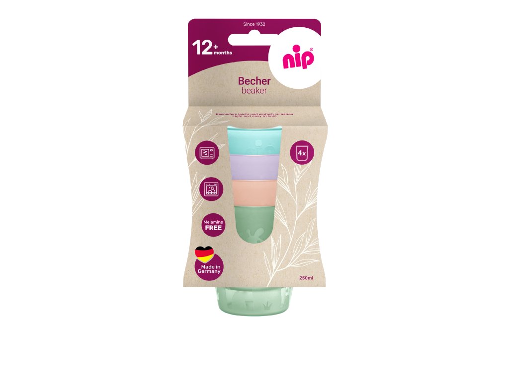 NIP Kalíšek na pití, 4ksSnadný přechod pro batolata - od krmení k samostatnému papání Krok za krokem - nip® podporuje zdravý a přirozený vývoj od krmení prvním pyré až po samostatné pití z kalíšku. Všechny naše produkty z řady "samostatného stolování" jsou obzvláště lehké, mají zaoblené hrany a jsou stohovatelné, takže zabírají méně místa. Děti prostě milují světlé barvy a roztomilý motiv žirafy. Kalíšek na pití › sada 4 kalíšků › velmi lehký a snadno se drží › praktický tvar umožňuje stohování › zaoblený okraj kalíšku pro pohodlné pití› roztomilý motiv žirafy v jemných barvách › vyrobené z odolných plastů z polypropylenu (PP) › robustní materiál neobsahuje změkčovadla (BPA) › vhodné do myčky i do mikrovlnné trouby › ideální na piknik, či na zahradu › výška 9 cm / prům. 8 cm › vhodné pro batolata od 12 měsíců › 0% BPA › VYROBENO V NĚMECKUDoplňkové parametry