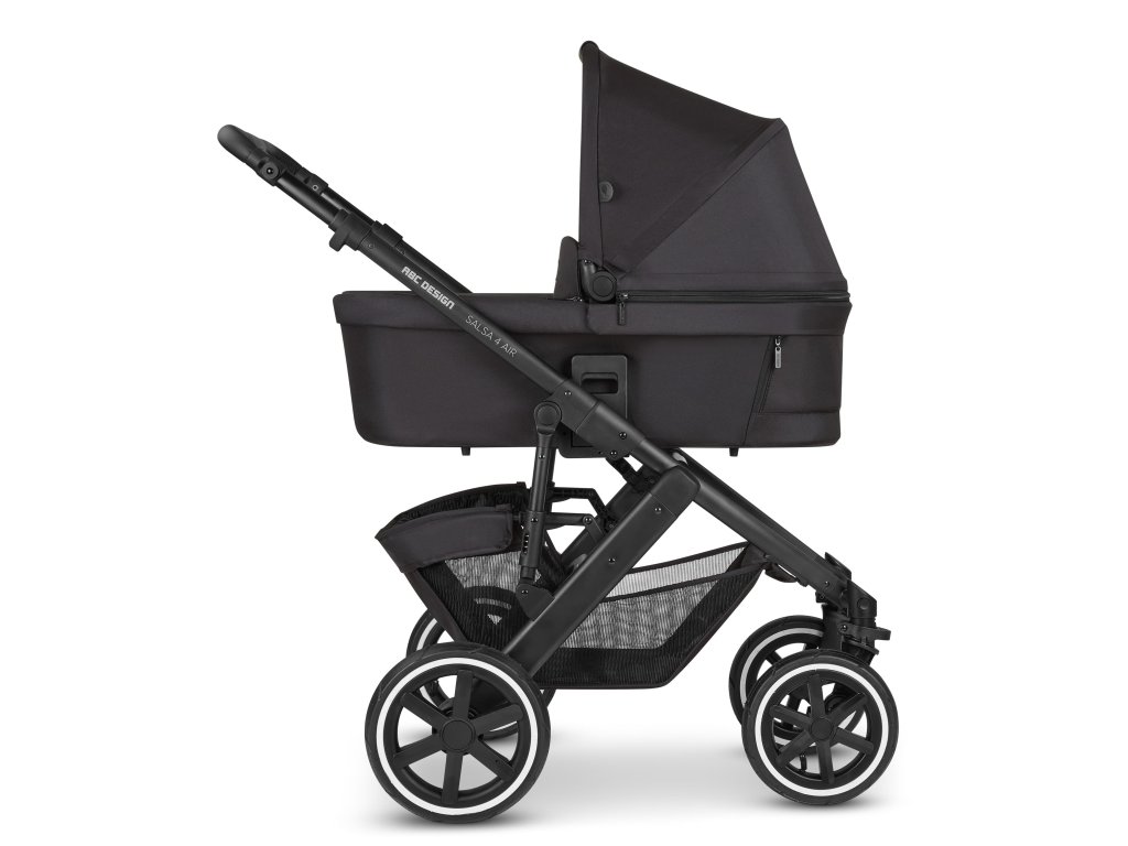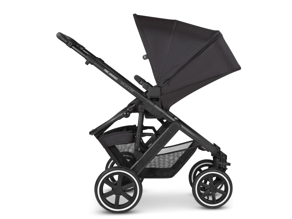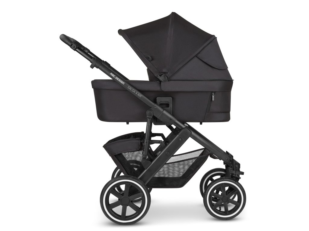 Salsa 4 Air- kombinovaný kočárek 2 v 1 s korbičkou a otočnou sportovní nástavbou- skládací korbička s nastavitelnou opěrkou hlavy- paměťová funkce u korbičky- CozyCloud® matrace - matrace na spaní- ochranná deka se zipem- cirkulace vzduchu- otočná sportovní nástavba nastavitelná do 4 poloh- omyvatelná opěrka nohou- skládací se sportovní nástavbou- odnímatelná bezp. madlo- výškově nastavitelná rukojeť- sluneční ochrana- parkovací brzda- 5bodový systém pásů- transportní pojistka- snadno ovladatelná nafukovací kola- otočná kola- odnímatelná kola- organizér na kočárky Všestranný kombinovaný kočárek do města a přírody Salsa 4 AirSalsa 4 Air je dynamický, obratný a lehký kočárek s jedinečnou osobností, který vám a vašemu dítěti bude již od prvního dne spolehlivým společníkem kamkoliv vás vaše procházky zavedou. Rukojeť lze snadno nastavit tak, aby vyhovovala jednotlivým rodičům. Adaptéry jsou k dispozici jako volitelné příslušenství, takže je možné ke kočárku snadno připevnit i dětskou autosedačku. S univerzálním fixním držákem ABC Design máte místo pro uložení veškerého příslušenství, jako je taška na pleny, držák nápojů nebo světlo, jediným kliknutím. Korbička nabízí dítěti maximální pohodlí. Dvě ventilační okénka lze jednotlivě otevřít nebo zavřít, aby byla zajištěna optimální cirkulace vzduchu. Klínovitě tvarovaná ergonomická matrace CozyCloud® má integrované vzduchové otvory v pěně pro zajištění optimální ventilace. Navíc má extra měkké ochranné okraje, které jsou vyvýšené, takže citlivá pokožka vašeho dítěte neleží přímo na ventilačním okénku. Při cestách autem lze korbičku snadno složit a uložit do zavazadlového prostoru, aniž by zabírala mnoho místa. Kočárek je vybaven organizérem pro lahve, dudlíky, ubrousky a podobně a taškou na vybavení. Jakmile se vaše dítě začne pokoušet o první krůčky, můžete korbičku vyměnit za pohodlnou otočnou sportovní nástavbu s možností nastavení do polohy zcela vleže. Opěradlo má 4 různá nastavení, takže jej můžete přizpůsobit podle potřeb dítěte. Překvapí vás svými vysoce kompaktními rozměry po složení a jednoduchostí skládání i s nasazenou sportovní nástavbou - bez ohledu na to, zda je otočena dopředu nebo dozadu. Matrace CozyCloud®Matrace vytváří dokonalé prostředí pro spánek vašeho dítěte díky prodyšné studené pěně s vertikálními vzduchovými kanály. Díky ergonomickému designu nabízí matrace ideálně nastavenou úroveň tvrdosti, která zajišťuje optimální komfort ležení od hlavy až po páteř. Klínovitý tvar v oblasti hlavy poskytuje jemné vyvýšení a podporuje zdravou polohu při spánku. Matrace je vhodná také pro alergiky. Kompatibilní s:ABC Design Hazel, TulipMaxi Cosi Citi, Cabrio Fix, Pebble, Pebble Plus, Pebble Pro, CoralCybex Aton, Aton 5, Aton M, Aton Q, Aton Q PLUS, Aton Q i-size, Cloud Q, Cloud Q PLUS, Aton M i-size, Cloud Z i-size, Cloud Z2 i-sizeKiddy Evo Lunafix, Evolution Pro, Evolution Pro 2Joie i-GemmBeSafe iZi Go Modular X1 i-SizeBritax Römer BABY-SAFE i-SIZE, BABY-SAFE 2 i-SIZE, BABY-SAFE 3 i-SIZE, BABY-SAFE iSENSE, BABY-SAFE i-SIZE 5ZNuna pipa nextAvionaut Cosmo, Pixel Pro Podrobnosti:Doporučení: od narozeníCelková nosnost: 27 kgMaximální nosnost: 22 kgMax. nosnost košíku: 5 kgDětská korba: Ano - součástí baleníRozměry po sestavení (D x Š): 95 x 63 cmVýška rukojeti: 101 - 110 cmRozměry po složení (D x Š x V): 80,5 x 63 x 28 cmRozměry korby (D x Š): 77 x 35 cmRozměry připevněné sedačky kočárku (D x Š): 20 x 30 cmRozměry připevněné opěrky zad kočárku (Š x V): 30 x 51 cmVelikost předních kol: 24 cmVelikost zadních kol: 27 cmCelková hmotnost se sportovní nástavbou: 14,5 kgCelková hmotnost s dětskou korbou: 14,5 kgDoplňkové parametry
