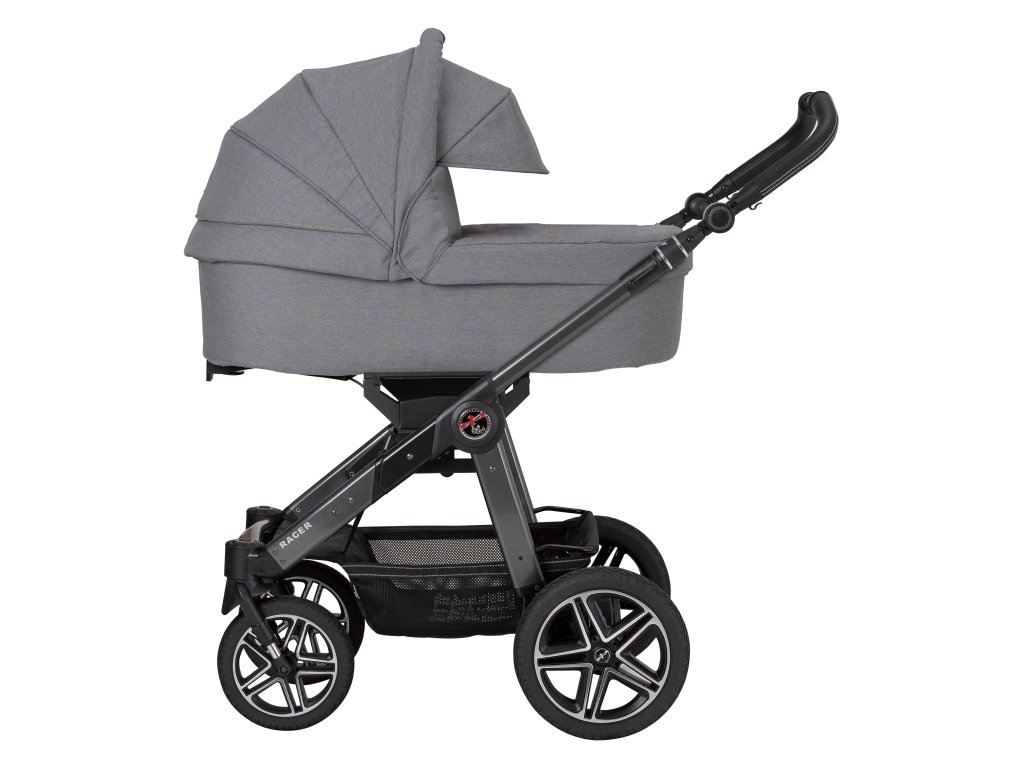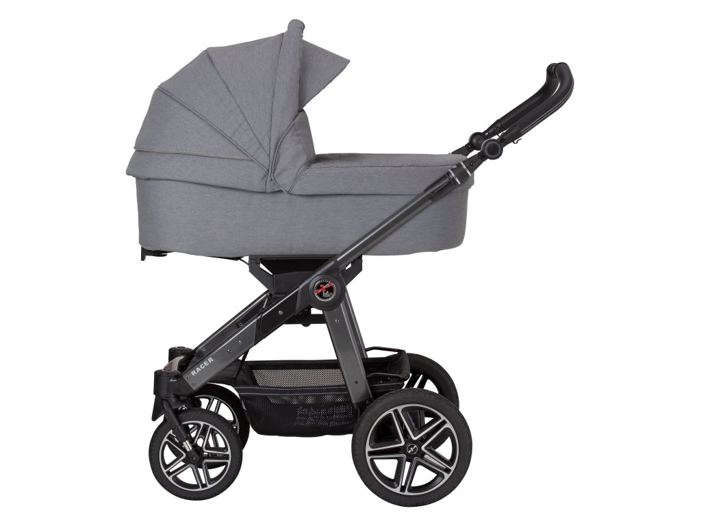 Racer GTS BRAKE Trigon Felge Vždy připraven – na každou výzvuBezpečnost v každém terénu. Optimální jízdní vlastnosti na jakémkoli podkladu zajišťují odpružená, extra-velká přední kola: jsou natáčecí a zvládnou jakoukoli „překážkovou dráhu“ ve městě. Pokud je pevně zaaretujete, bezpečně udrží stopu i na dobrodružných výpravách cestou necestou. Racer GTS přesvědčí ryzím požitkem z jízdy a sportovním vzhledem – prostě pravý sporťák. S ruční brzdou na rukojeti.Varianty vhodných tašek na dítě:Hluboká korba na dítě Falt - klasická hloubka, madlo, možnost složení - rozměry (D x Š x V): 80 x 34 x 22 cm- hmotnost: 5,1 kgKombi vložná taška - lehká, skládací, popruhy k přenášení- rozměry (D x Š x V): 80 x 32 x 22 cm- hmotnost: 2,6 kg Volitelné vybavení k dokoupení:Click adaptér pro autosedačky sk. 0 Vlastnosti:- nosnost 22 kg- opěrka nohou s možností nastavení výšky a prodloužení- otočná nástavba s bezpečnostní pojistkou- tiché nastavení stříšky- vícepolohová opěrka zad s možností polohy vleže- rukojeť s nastavitelnou výškou- aretovací natáčecí kolečka s odpruženímPodvozek: rozměr při složení (D x Š x V): 84 x 59 x 31 cmHmotnost: 10,8 kgNástavba: rozměr při složení (D x Š x V): 78 x 40 x 24 cmHmotnost: 4,9 kg Rozměry zkompletovaného kočárku (D x Š x V): 100 x 58,5 x 113 cmDoplňkové parametry