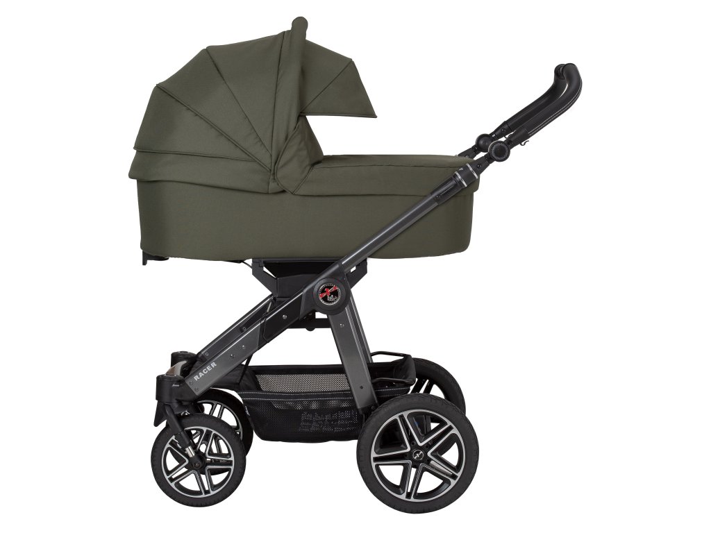 Racer GTS BRAKE Trigon Felge Vždy připraven – na každou výzvuBezpečnost v každém terénu. Optimální jízdní vlastnosti na jakémkoli podkladu zajišťují odpružená, extra-velká přední kola: jsou natáčecí a zvládnou jakoukoli „překážkovou dráhu“ ve městě. Pokud je pevně zaaretujete, bezpečně udrží stopu i na dobrodružných výpravách cestou necestou. Racer GTS přesvědčí ryzím požitkem z jízdy a sportovním vzhledem – prostě pravý sporťák. S ruční brzdou na rukojeti.Varianty vhodných tašek na dítě:Hluboká korba na dítě Falt - klasická hloubka, madlo, možnost složení - rozměry (D x Š x V): 80 x 34 x 22 cm- hmotnost: 5,1 kgKombi vložná taška - lehká, skládací, popruhy k přenášení- rozměry (D x Š x V): 80 x 32 x 22 cm- hmotnost: 2,6 kg Volitelné vybavení k dokoupení:Click adaptér pro autosedačky sk. 0 Vlastnosti:- nosnost 22 kg- opěrka nohou s možností nastavení výšky a prodloužení- otočná nástavba s bezpečnostní pojistkou- tiché nastavení stříšky- vícepolohová opěrka zad s možností polohy vleže- rukojeť s nastavitelnou výškou- aretovací natáčecí kolečka s odpruženímPodvozek: rozměr při složení (D x Š x V): 84 x 59 x 31 cmHmotnost: 10,8 kgNástavba: rozměr při složení (D x Š x V): 78 x 40 x 24 cmHmotnost: 4,9 kg Rozměry zkompletovaného kočárku (D x Š x V): 100 x 58,5 x 113 cmDoplňkové parametry