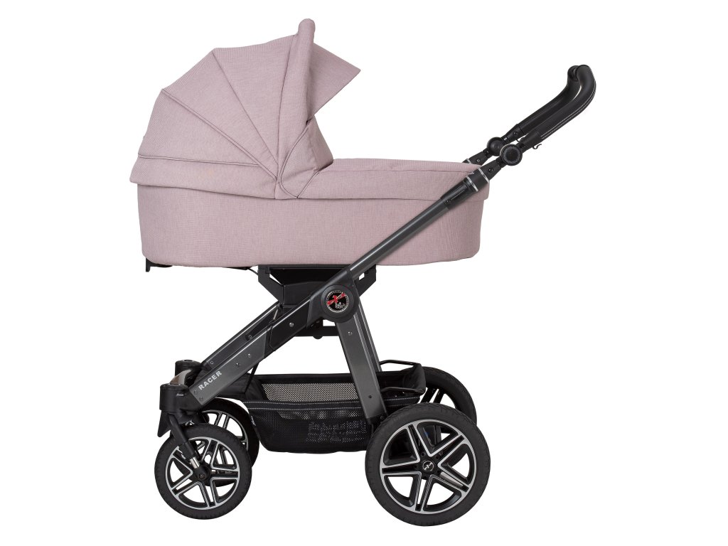 Racer GTS BRAKE Trigon Felge Vždy připraven – na každou výzvuBezpečnost v každém terénu. Optimální jízdní vlastnosti na jakémkoli podkladu zajišťují odpružená, extra-velká přední kola: jsou natáčecí a zvládnou jakoukoli „překážkovou dráhu“ ve městě. Pokud je pevně zaaretujete, bezpečně udrží stopu i na dobrodružných výpravách cestou necestou. Racer GTS přesvědčí ryzím požitkem z jízdy a sportovním vzhledem – prostě pravý sporťák. S ruční brzdou na rukojeti.Varianty vhodných tašek na dítě:Hluboká korba na dítě Falt - klasická hloubka, madlo, možnost složení - rozměry (D x Š x V): 80 x 34 x 22 cm- hmotnost: 5,1 kgKombi vložná taška - lehká, skládací, popruhy k přenášení- rozměry (D x Š x V): 80 x 32 x 22 cm- hmotnost: 2,6 kg Volitelné vybavení k dokoupení:Click adaptér pro autosedačky sk. 0 Vlastnosti:- nosnost 22 kg- opěrka nohou s možností nastavení výšky a prodloužení- otočná nástavba s bezpečnostní pojistkou- tiché nastavení stříšky- vícepolohová opěrka zad s možností polohy vleže- rukojeť s nastavitelnou výškou- aretovací natáčecí kolečka s odpruženímPodvozek: rozměr při složení (D x Š x V): 84 x 59 x 31 cmHmotnost: 10,8 kgNástavba: rozměr při složení (D x Š x V): 78 x 40 x 24 cmHmotnost: 4,9 kg Rozměry zkompletovaného kočárku (D x Š x V): 100 x 58,5 x 113 cmDoplňkové parametry