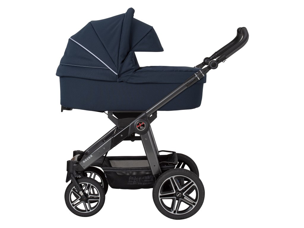 Racer GTS BRAKE Trigon Felge Vždy připraven – na každou výzvuBezpečnost v každém terénu. Optimální jízdní vlastnosti na jakémkoli podkladu zajišťují odpružená, extra-velká přední kola: jsou natáčecí a zvládnou jakoukoli „překážkovou dráhu“ ve městě. Pokud je pevně zaaretujete, bezpečně udrží stopu i na dobrodružných výpravách cestou necestou. Racer GTS přesvědčí ryzím požitkem z jízdy a sportovním vzhledem – prostě pravý sporťák. S ruční brzdou na rukojeti.Varianty vhodných tašek na dítě:Hluboká korba na dítě Falt - klasická hloubka, madlo, možnost složení - rozměry (D x Š x V): 80 x 34 x 22 cm- hmotnost: 5,1 kgKombi vložná taška - lehká, skládací, popruhy k přenášení- rozměry (D x Š x V): 80 x 32 x 22 cm- hmotnost: 2,6 kg Volitelné vybavení k dokoupení:Click adaptér pro autosedačky sk. 0 Vlastnosti:- nosnost 22 kg- opěrka nohou s možností nastavení výšky a prodloužení- otočná nástavba s bezpečnostní pojistkou- tiché nastavení stříšky- vícepolohová opěrka zad s možností polohy vleže- rukojeť s nastavitelnou výškou- aretovací natáčecí kolečka s odpruženímPodvozek: rozměr při složení (D x Š x V): 84 x 59 x 31 cmHmotnost: 10,8 kgNástavba: rozměr při složení (D x Š x V): 78 x 40 x 24 cmHmotnost: 4,9 kg Rozměry zkompletovaného kočárku (D x Š x V): 100 x 58,5 x 113 cmDoplňkové parametry