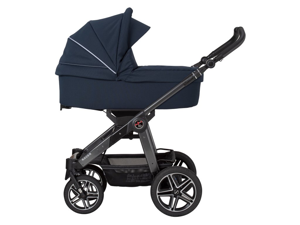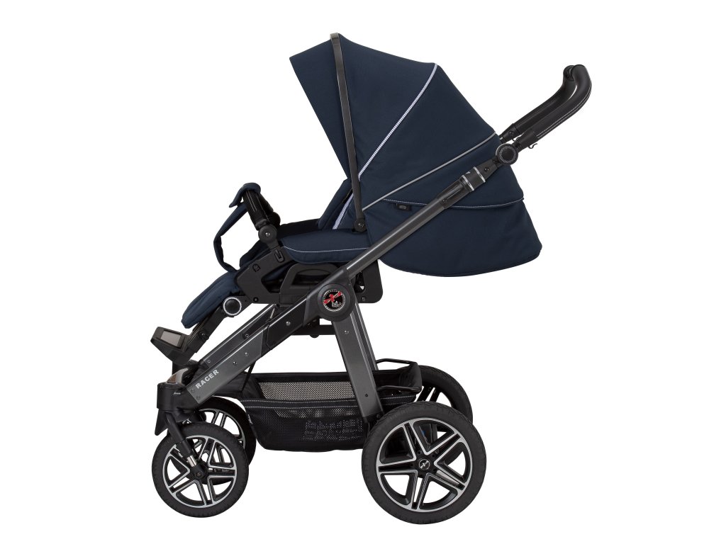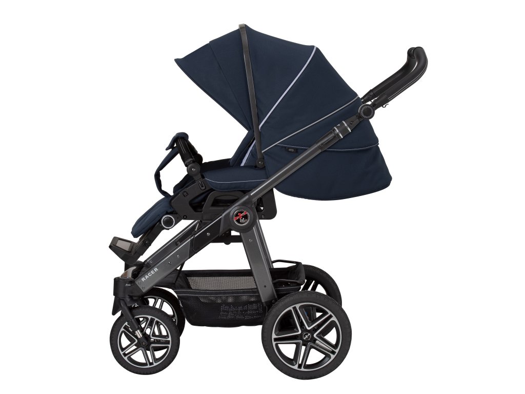 Racer GTS Trigon Felge Vždy připraven – na každou výzvuBezpečnost v každém terénu. Optimální jízdní vlastnosti na jakémkoli podkladu zajišťují odpružená, extra velká přední kola: jsou natáčecí a zvládnou jakoukoli „překážkovou dráhu“ ve městě. Pokud je pevně zaaretujete, bezpečně udrží stopu i na dobrodružných výpravách cestou necestou. Racer GTS přesvědčí ryzím požitkem z jízdy a sportovním vzhledem – prostě pravý sporťák.Varianty vhodných tašek na dítě: Falt taška Soft taška Kombi taška Volitelné vybavení k dokoupení: Ruční brzda (je nutno zvolit již při objednání, nelze dokoupit dodatečně) Zaklapávací systém adaptéru pro autosedačky skupiny 0 Vlastnosti: Opěrka nohou s možností nastavení výšky a prodloužení Otočná nástavba s bezpečnostní pojistkou Tiché nastavení stříšky Vícepolohová opěrka zad s možností polohy vleže Rukojeť s nastavitelnou výškou Aretovací natáčecí kolečka s odpruženímHmotnost:Podvozek: rozměr při složení: 84 x 59 x 31 cmHmotnost: 10,8 kgNástavba: rozměr při složení 78 x 40 x 24 cmHmotnost: 4,9 kgDoplňkové parametry