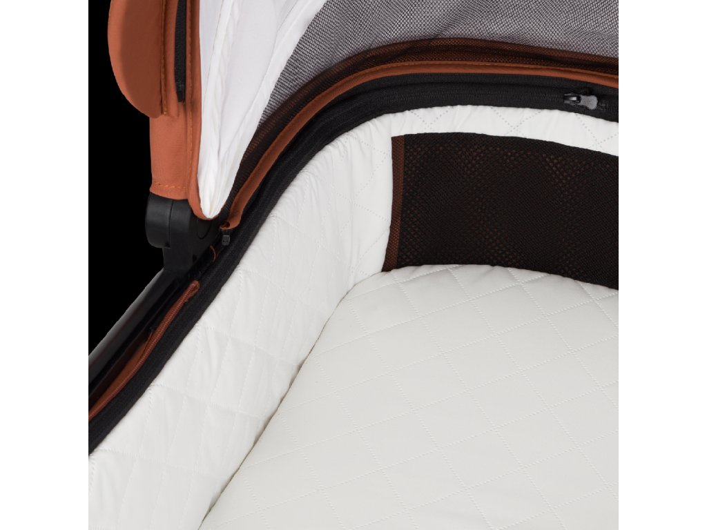 Kočárek byl navržen tak, aby vypadal stylově a zároveň byl velmi praktický. Proto má například háčky na tašku na rukojeti, organizér na zip na košíku, držák na nápoje a oboustranný zip na potahu autosedačky. Jednotlivé detaily jsou barevně sladěné a branding je decentní, aby celku dodal jemnou eleganci.