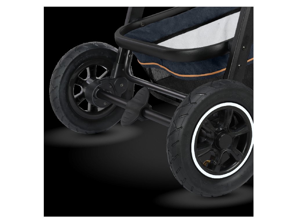 Nafukovací, odpružená kola umožňují plynulou jízdu po nerovném terénu. Možnost otáčení kol o 360° pomáhá s manévrováním v městském provozu. V terénních podmínkách se osvědčuje aretace předních kol, která stabilizuje kočárek na nevyrovnaném povrchu. Kočárek Lionelo Amber 2v1 má centrální brzdu s jednoduchým ovládáním.