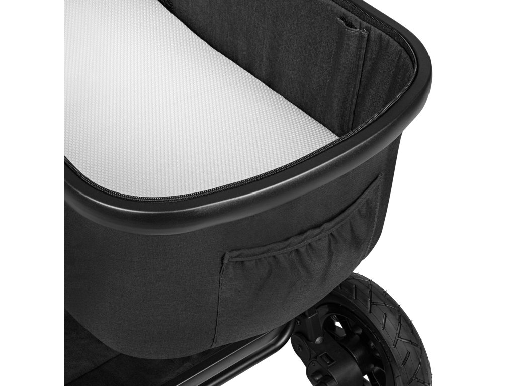 Sporťák i korbičku lze instalovat ve směru i proti směru jízdy a praktická zádové opěrky, u sportovní verze, zajišťuje pohodlnou polohu pro dítě. Velká stříška XXL s filtrem UPF 50+ chrání dítě před každým počasím a prostřednictvím síťového okénka můžete sledovat dítě během procházky. O bezpečnost se starají 5ti-bodové bezpečnostní pásy s další podporou v podobě madla, které můžete odstranit nebo sklopit z libovolné strany. Velký košík pod sedadlem je skvělý na každodenní nákupy.