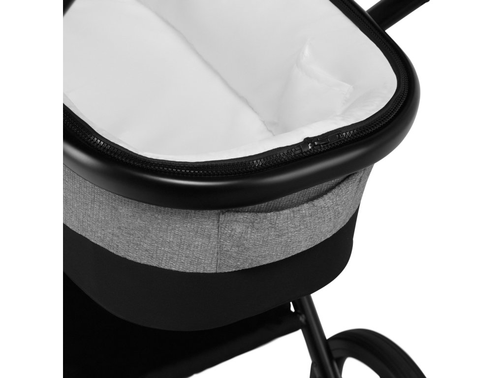 Kombinovaný kočárek Lionelo Mika 2v1 má pohodlnou korbičku, přizpůsobenou pro přepravu dítěte od 1. dne do přibližně 6. měsíce života - vhodná matrace podpírá záda a odnímatelný bavlněný potah je příjemný na dotek. Praktická bočnice se síťovinou umožňuje skvělou cirkulaci vzduchu. Korbička se skládá do roviny, což usnadní její uložení na malém prostoru. Dítě můžete v korbičce také bezpečně přenášet (shoda s normou EN 1466).