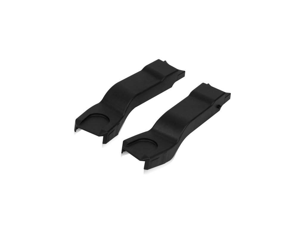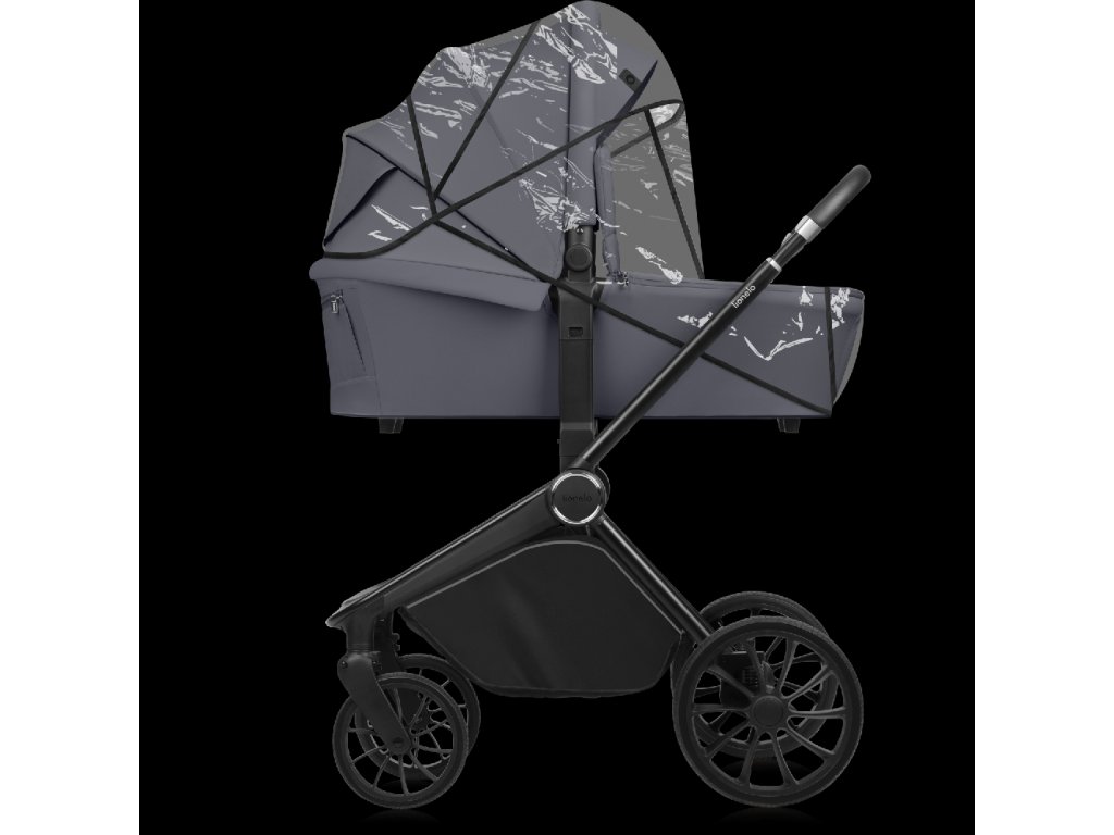 Použité materiály se vyznačují nejvyšší kvalitou – díky vysokému obsahu elastanu se potah nemačká a prémiová látka je odolná proti oděru a atmosférickým podmínkám. Pásy jsou vybaveny speciální magnetickou přezkou, která usnadňuje zapínání, a adaptéry přiložené v sadě umožňují upravit montážní výšku korby individuálním požadavkům rodičů.
