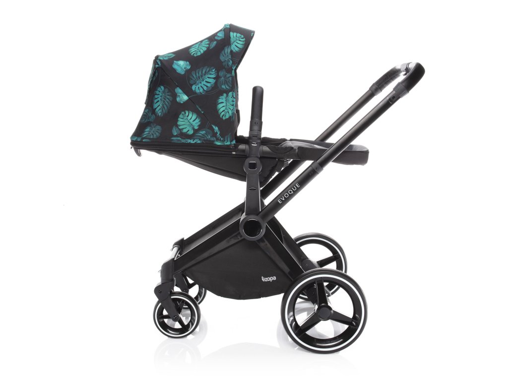 Kočárek Zopa Evoque je designový ale zároveň praktický kočárek pro děti od narození do 15 kilogramů. Jedná se o dvojkombinaci, kdy se z rámu prostorné, hluboké korby vytvoří sportovní sezení. Sportovní sedačka je polohovatelná a lze umísti po i proti směru jízdy. Dítě chrání pětibodový bezpečnostní pás. Kvalitní jízdu zajistí velká, odpružená zadní kola o průměru 29,5 centimetrů. Kočárek nabízí i funkci jízdy po dvou kolech, pro jízdu v písku nebo pro usnadnění jízdy po schodech. Přední kolečka mají automatickou aretaci a jsou také odpružená. Samozřejmostí je pak výškově nastavitelná rukojeť, která je stejně jako odnímatelná hrazda potažena ekokůží. Kočárek lze snadno složit. Podvozek i ve složeném stavu sám stojí, proti rozložení ho jistí pojistka. Podvozek nabízíme ve čtyřech barevných kombinacích. K podvozku si můžete vybrat barevný set dle svého vkusu. Set obsahuje stříšku se zabudovanou sluneční clonou pro korbu i sportovní sezení, nánožník hluboké korby, polstrování bezpečnostních pásů sportovního sezení, nánožník pro sportovní sezení. Sety jsou nabízeny v barvách: Butterfly, Grey Melange, Jeans, Jungle a Petrol Blue. Součástí kočárku jsou adaptéry na pro autosedačky s uchycením Maxi Cosi, na které snadno připevníte autosedačku Zopa X1 Plus i-size nebo autosedačky jiných značek. Technické parametry: Vnitřní rozměr hluboké korby: délka 83 cm, šířka 35 cm Rozměry podvozku v rozloženém stavu (rukojeť v nejvyšší poloze): Š 59,5cm x V102cm x D90cm Rozměry podvozku ve složeném stavu: Š 59,5cm x V 92cm x D 44cm Váha podvozku včetně koleček: 7,8kg Maximální nosnost kočárku: 15 kg Maximální nosnost košíku: 5kgDoplňkové parametry