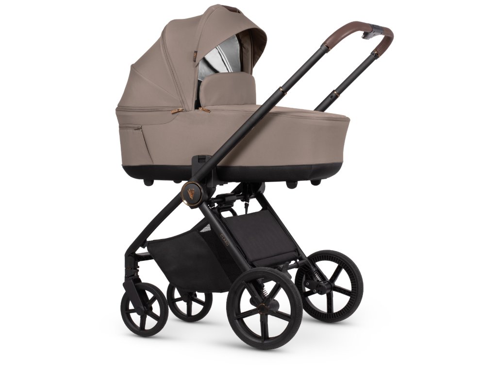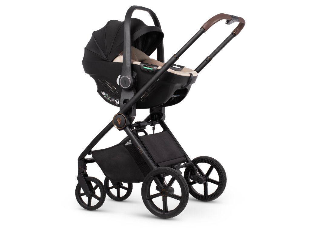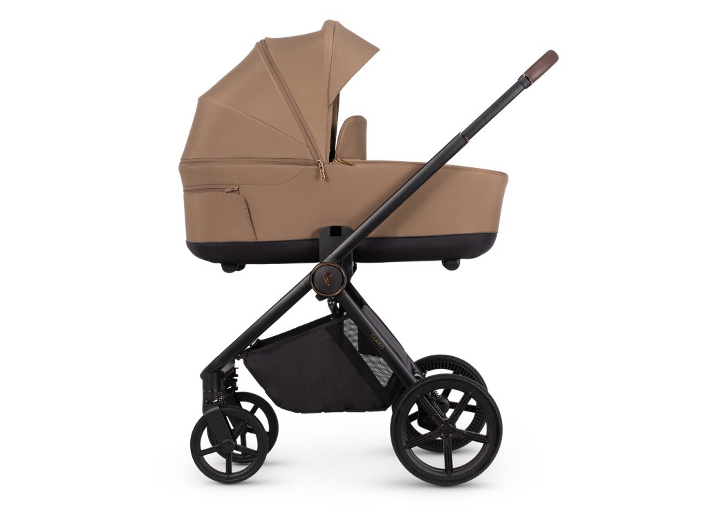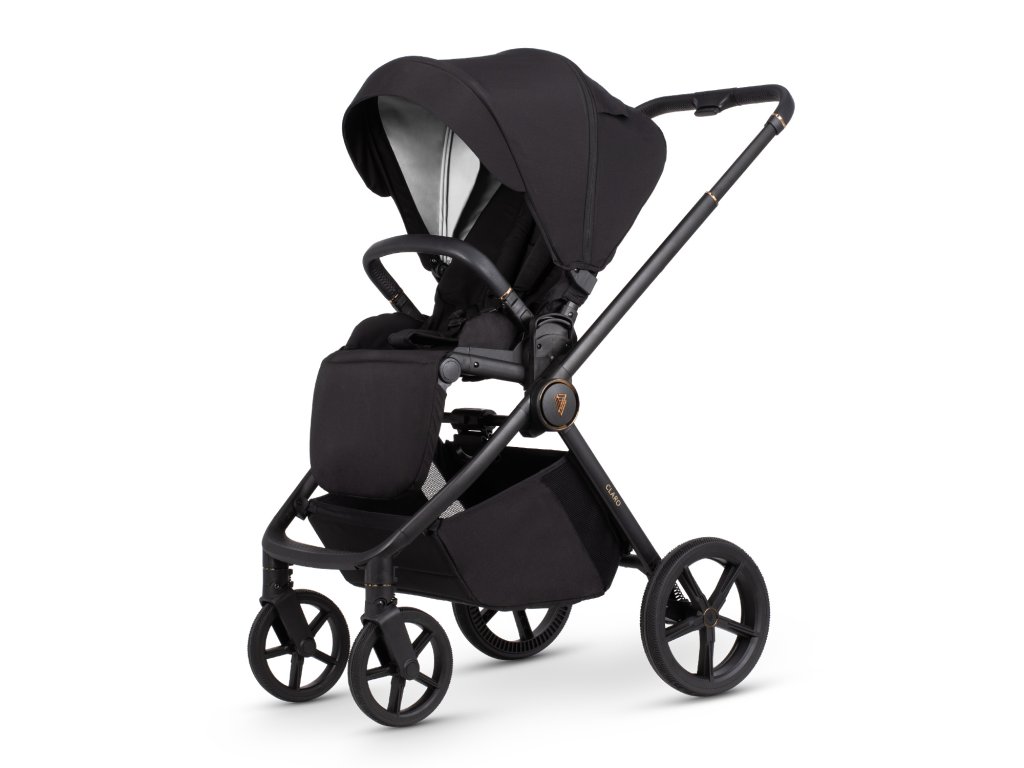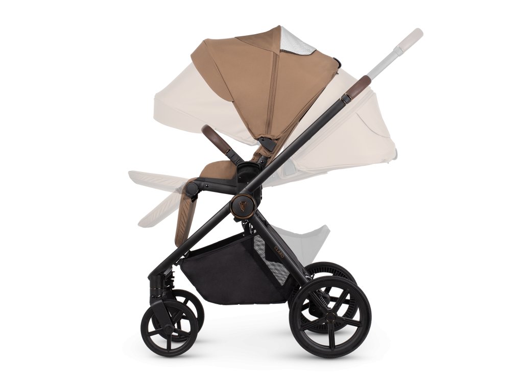 Venicci Claro ztělesňuje moderní městský styl a kombinuje funkčnost s nápadným designem. Jeho stylové hliníkové šasi s černým matným povrchem, zvýrazněné lesklými měděnými detaily a koženkovými rukojeťmi, vyzařuje kvalitu a luxusní řemeslné zpracování. Vysoce kvalitní, měkké látky v zajímavých barvách, reliéfní vzory a elegantní kovové kování dotvářejí jeho sofistikovaný vzhled. Každá sada Claro obsahuje také odpovídající příslušenství, jako je přebalovací taška a nánožník, které zajišťují styl a pohodlí.