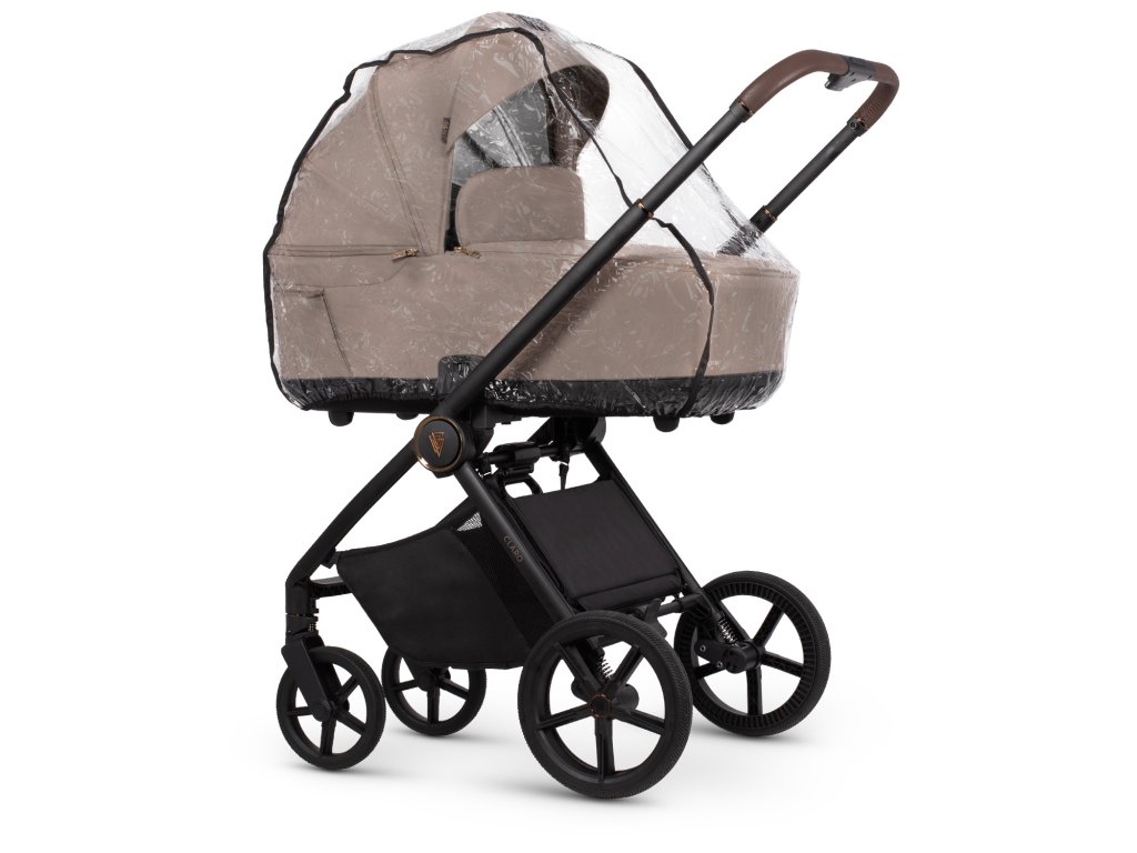 SOUČÁSTI KOČÁRKU VENICCI Claro : podvozek, hluboká korba, sportovní nástavba, nánožník na hlubokou korbu, nánožník na sportovní nástavbu, přebalovací taška na madlo, pláštěnka a košík.