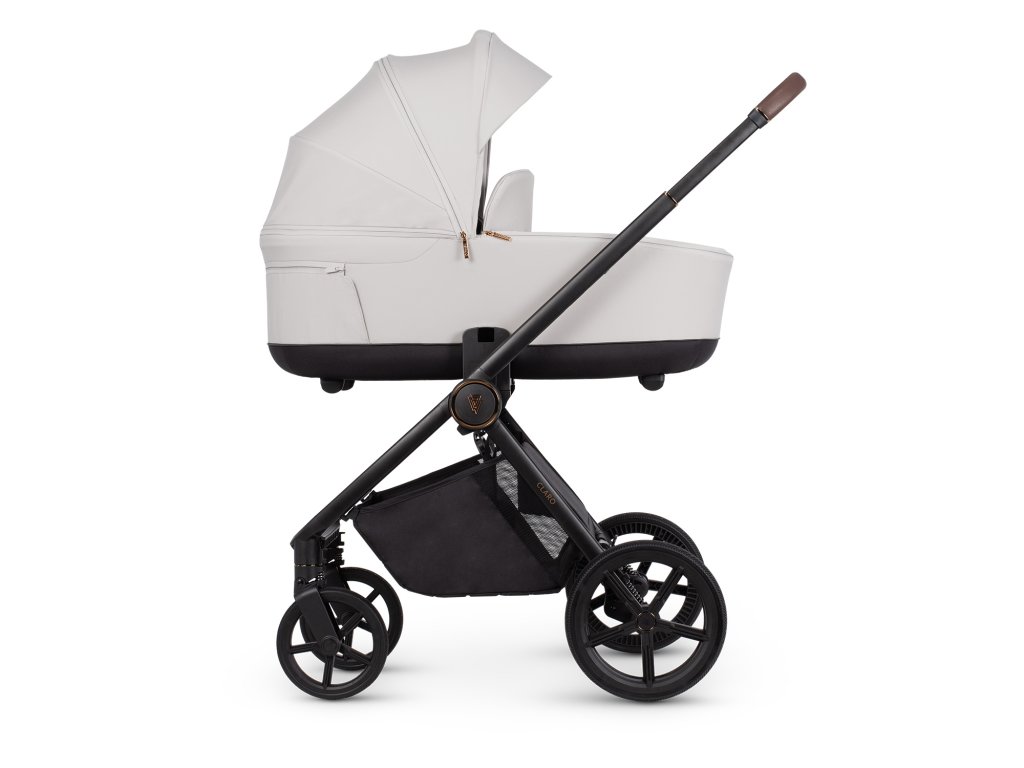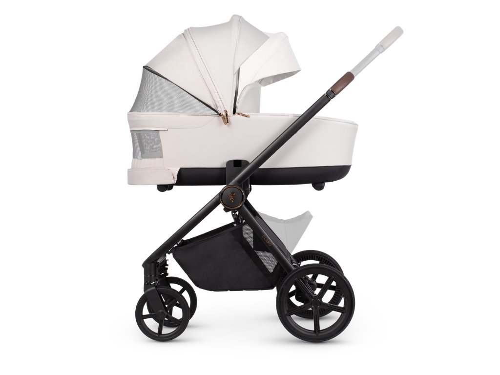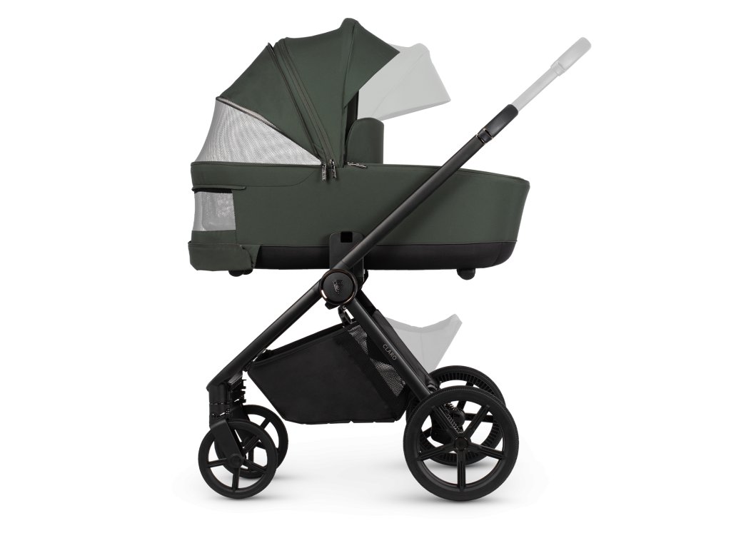 Je vyrobeno ze základny EPP a vodoodpudivých látek UV 50+, které nabízejí výjimečnou lehkost a odolnost. Jeho panoramatické větrání ze síťoviny v základně a velká sluneční stříška zajišťují neomezené proudění vzduchu a lepší kontakt s vaším děťátkem, zejména v teplejších dnech. Korbička má také integrovanou rukojeť a paměťová tlačítka pro snadné odpojení od rámu Claro.