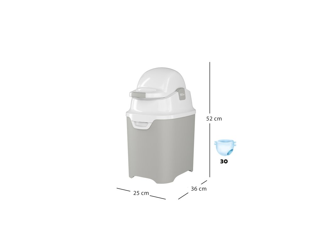 Unikátní koš na pleny DiaperChamp ONE poskytuje díky patentovanému vzduchotěsnému systému ochranu před nepříjemnými pachy a bakteriemi v dětském pokoji nebo kdekoli ve vašem interiéru. Použitou plenu stačí vložit do otvoru ve víku koše, otočením držadla plena propadne do koše a jeho otočením zpátky je koš opět připraven pro další použití. To vše jednou rukou, takže druhou můžete držet vaše miminko. Speciální systém těsnění udržuje zápach uvnitř koše. Použití koše DiaperChamp ONE je velmi ekonomické, protože nepotřebuje žádné speciální výměnné kazety. Koš je určen pro použití s běžnými sáčky na odpadky o objemu 60 l. Koš pojme cca 30 plen (počet plen záleží na jejich velikosti), takže vám jeho kapacita vystačí na několik dní. Vyprázdnění koše je velmi jednoduché a rychlé. Koš je vybaven dětskou pojistkou. Rozměry: 52 x 25 x 36 cm