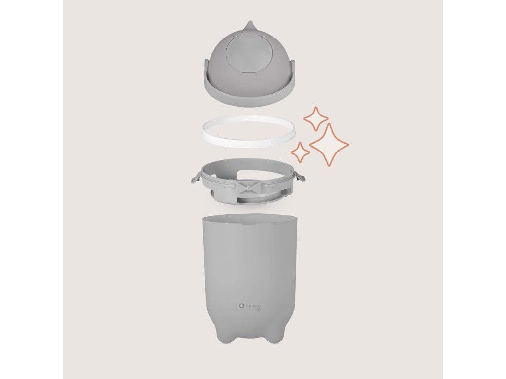 Koš na pleny Lionelo Purebin má hladké vnitřní stěny, které rychle setřete bez větší námahy. Když dítě odroste z plenek, nemusíte koš odkládat – poslouží jako běžná, praktická nádoba na odpadky, takže ho využijete ještě dlouho.