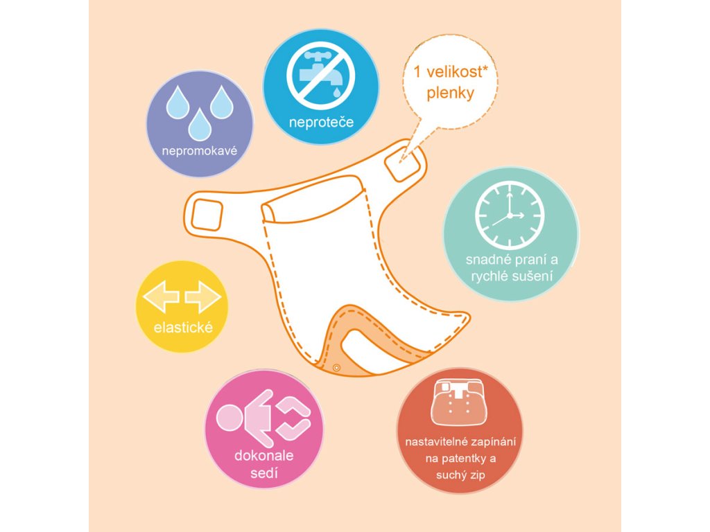 Oceněná plenka miosolo all in one je krásně měkká, stylová a používá se stejně jednoduše, jako jednorázové pleny. Využívá nejnovějších poznatků v oblasti funkčních textilních materiálů a dlouholetých zkušeností výrobce, získaných výrobou a prodejem látkových plen v 60-ti zemích světa. Jednovelikostní plenku lze používat od narození po nočník a proto není potřeba zakoupit další pleny. Velikost plenky se dá jednoduše přizpůsobit velikosti vašeho dítěte pomocí dvou řad patentů a optimalizovaných pásků suchých zipů Velcro®, díky nimž plenka dítěti dokonale padne. Super absorpční jádro plenky a "stay-dry" vnitřní vrstva odvádějí vlhkost do plenky a zabraňují jejímu prosáknutí zpět na jemnou pokožku dítěte. Elastický a voděodolný vnější materiál drží i těm nejaktivnějším dětem. Unikátní vysouvací jádro s úchyty pro snadné vyjímání a vkládání do pleny zvyšuje efektivitu praní a urychluje sušení plenky. V případě potřeby se může vložit dovnitř ještě mioboost pro další zvýšení kapacity. Plenka je vyrobena z měkké látky, která zůstane krásně hebká i po více praních a poskytuje pohodlí pro zadeček vašeho děťátka. Složení látky: vnější: 100% polyester, laminováno polyuretanem, vnitřní: 100% polyester, jádro: 85% polyester, 15% nylon.Praní v pračce na 60°C. Nepoužívejte chlorové čističe. Může sa sušit v sušičce na nízkou teplotu. Nežehlit. Při praní musí být suché zipy vždy zapnuté, aby se zabránilo poškození plenek.Hmotnost: 0,145 kgRozměry: 0,035 x 0,240 x 0,180Doplňkové parametry