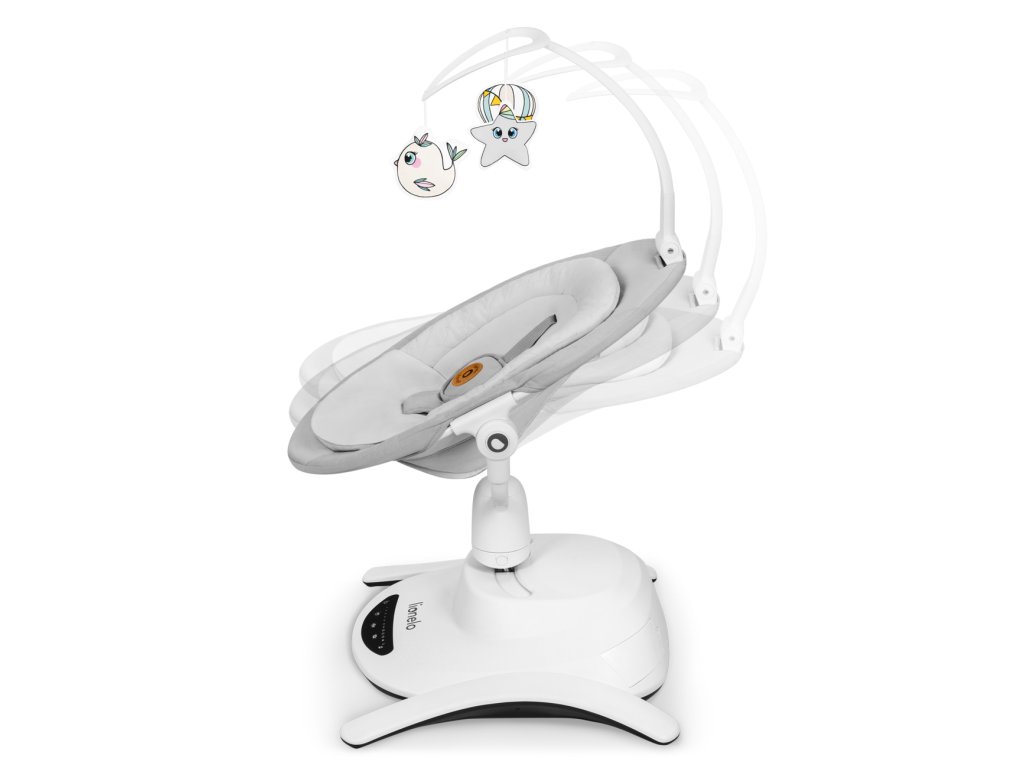 Houpačka je vybavena mnoha užitečnými funkcemi, které usnadňují život rodičům. Noční režim zajistí, že výrobek začne pomalu zpomalovat, až se úplně zastaví, když dítě usne. Automatický detektor pohybu spustí houpání a hudbu, když se dítě začne převalovat. Všechna nastavení zařízení můžete ovládat z dotykového ovládacího panelu nebo na dálku pomocí dálkového ovládání. Tento model přehrává 12 klidných melodií s regulací hlasitosti.