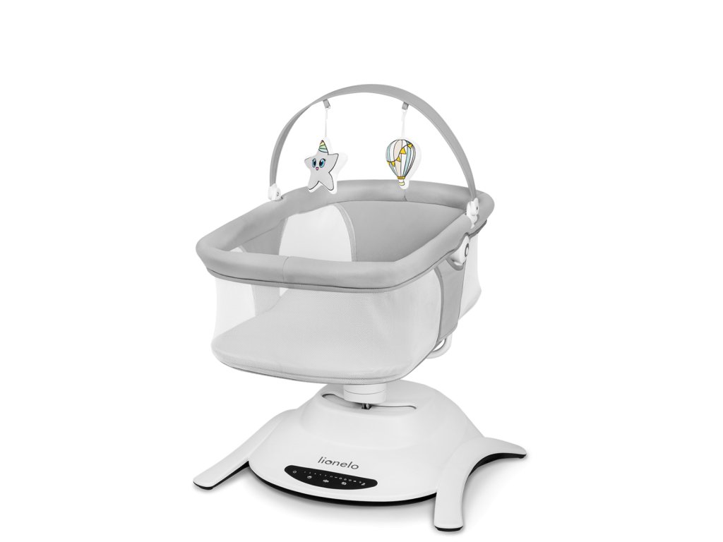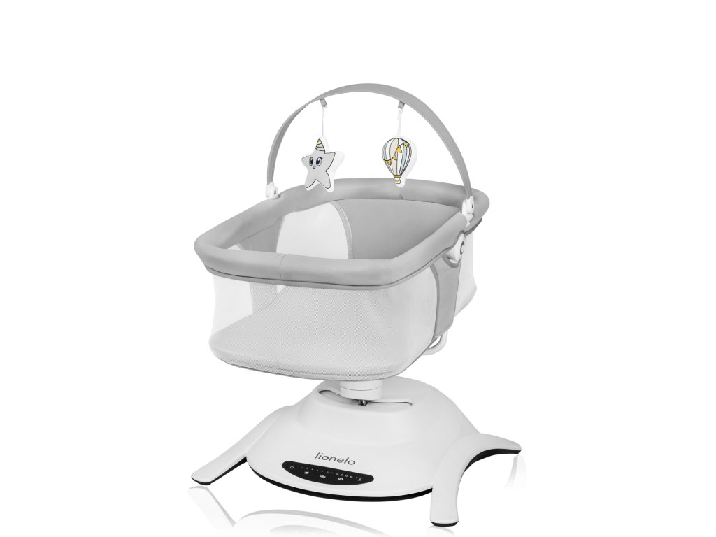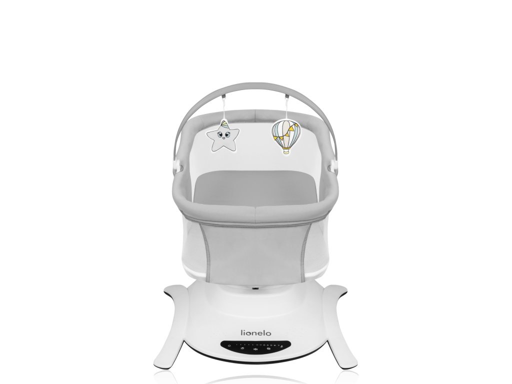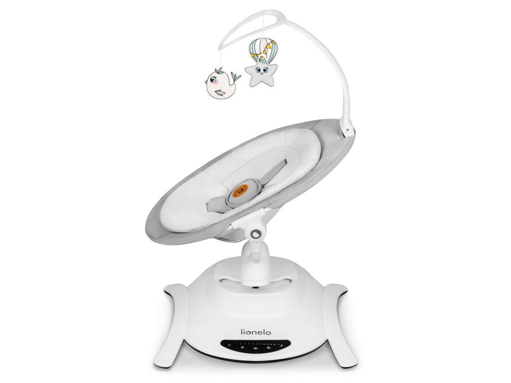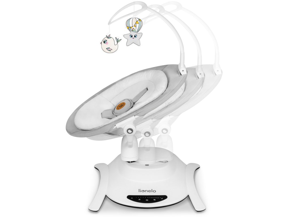 Všechna nastavení produktu můžete ovládat z dotykového ovládacího panelu nebo pomocí dálkového ovládání. Díky tichému provozu pohonu si můžete být jisti, že neprobudíte dítě, když spí. Tento model obsahuje 12 klidných melodií a disponuje hrazdičkou se 3 hračkami, která může být použita jak u houpačky, tak i korbičky se 2 hračkami. Tyto doplňky navíc procvičují koncentraci dítěte, poskytují mu nové podněty a motivují ho k vytahování rukou. Houpačka Lionelo Bella Set 2v1 je lehká, snadno přenosná a lze ji umístíte kamkoli. Podlahu chrání protiskluzové podložky proti poškrábání. V případě znečištění můžete rám otřít vlhkým hadříkem a potah prát ručně.