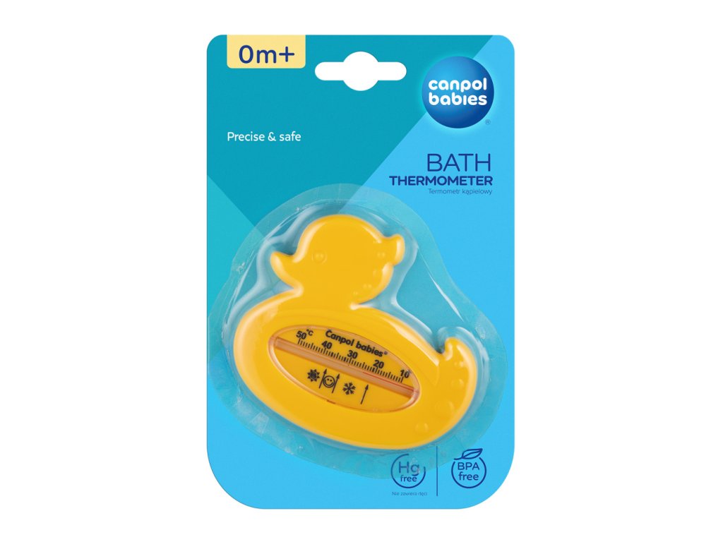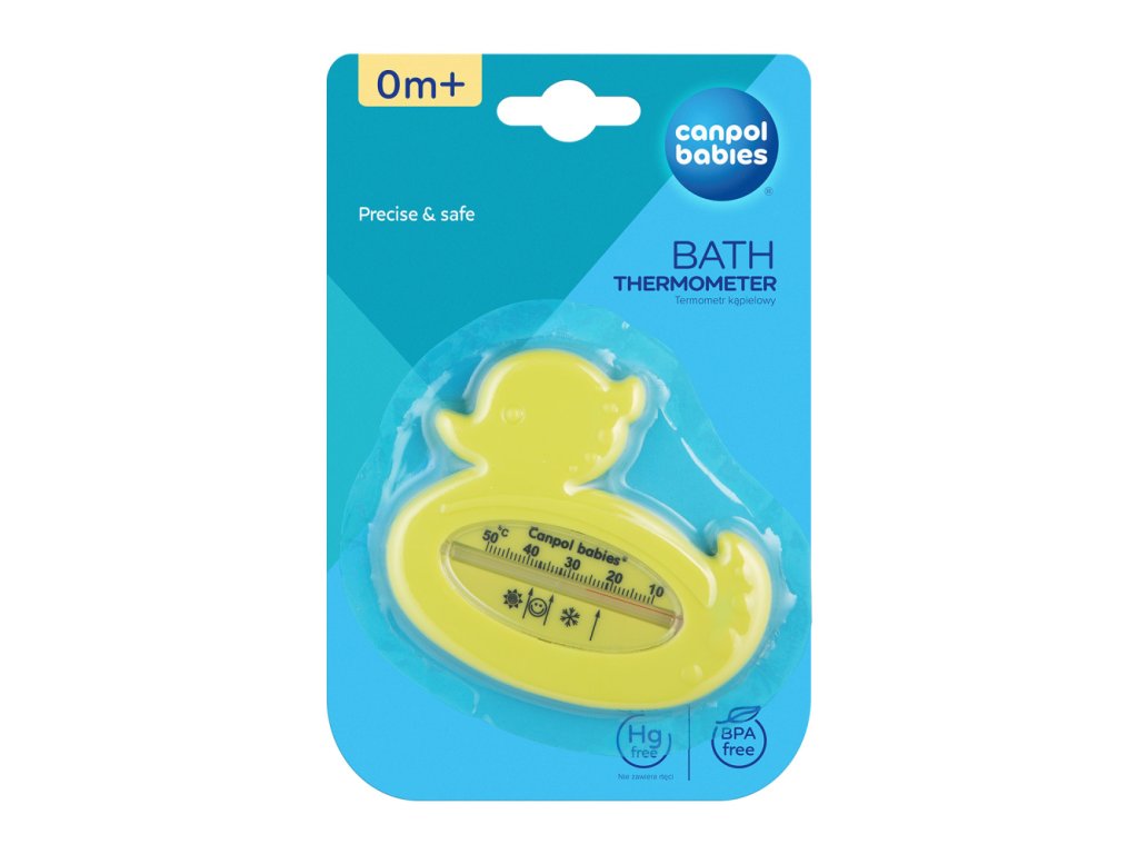 Koupací teploměr slouží ke kontrole teploty vody připravované koupací lázně malého dítěte. Je přesný, spolehlivý s dobře čitelnou stupnicí. K měření teploty se používá obarvený alkohol/petrolej - podle šarže výrobku. Trubička teploměru je bezpečně zapuštěna v těle teploměru tak, aby se k ní dítě nedostalo. Upozornění! Doporučená teplota koupací lázně malého dítěte se pohybuje mezi 32 - 37°C a je na teploměru označena symbolem smějící se tváře. Teplota označená sněhovou vločkou je příliš nízká a teplota označená sluníčkem příliš vysoká.