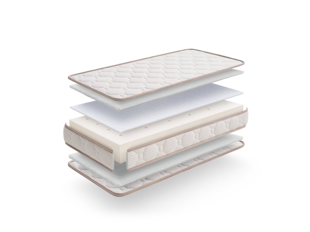 Matrace do dětské postýlky s paměťovou pěnou, která se přizpůsobí spícímu dítěti. Matrace 120x 60 cm. Matrace obsahuje paměťovou pěnu, která se přizpůsobí tělu spícího dítěte a uvolňuje body na které při spánku vzniká tlak. Podle odborníků je prodyšnost matrací klíčovým faktorem, umožňuje cirkulaci vzduchu uvnitř matrace, zabraňuje koncentracím CO2 a snižuje riziko náhlého úmrtí kojenců. Prodyšnost navíc zabraňuje vlhkosti a roztočům. Každá matrace MyBabyMattress je prodyšná a používá inovativní ANTI-MITES systém, který poskytuje dítěti suchý, bezpečný a pohodlný odpočinek. VlastnostiVentilace 3/5Přizpůsobivost 2/5Odnímatelný potah120 x 60 x 12 cm Stretch Tex - Elastická, měkká a prodyšná tkanina. Usnadňuje pohyb dítěte během spánku. Thermo Fiber - Používa sa na polstrovanie tkanín. Zvyšuje prispôsobivosť a pohodlnosť matraca. Visco Innogel® - Poskytuje větší svěžest, než pěna běžné paměti. Gelové částice zpomalují absorpci tepla a zmírňují pocit tepla, tak matrace s touto vrstvou zajistí klidný a ničím nerušený spánek. Aquapur® Core - Pro jemný a pohodlný pocit. Struktura s otevřenými buňkami zajišťuje cirkulaci vzduchu uvnitř matrace. Většina výrobců monitorů dechu (např. Babysense, Nanny, a další) doporučují tloušťku matrace maximálně 12 cm.Doplňkové parametry