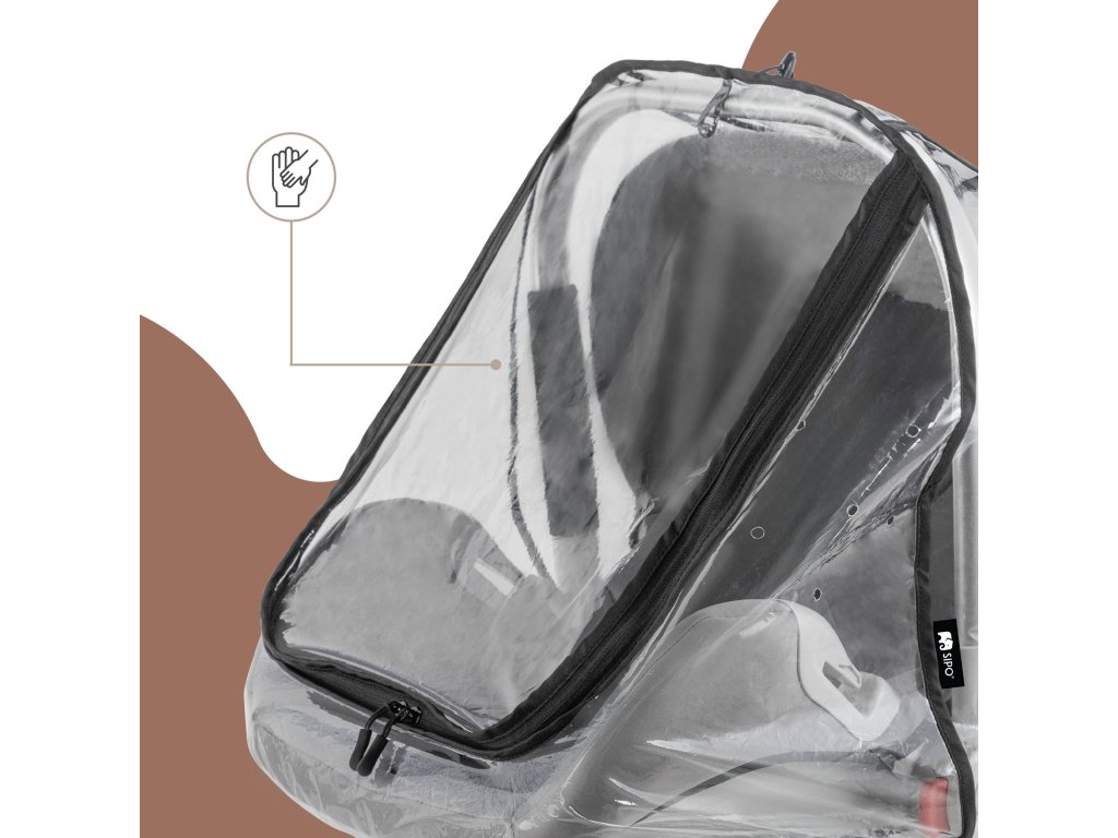NÁZEV PRODUKTU:Sipo Pláštěnka na autosedačku, EVA, transparentníSPECIFIKACE:Model: SCA-08Značka: SIPOEAN: 5904717761481Materiál: EVA (bez PVC, bez zápachu, bezpečné pro děti)Barva: průhlednáRozměry [nainstalovaný kryt]: 120 cm × 90 cmRozměry balení: 18 cm x 4 cm x 20 cm (+3 cm)Čistá hmotnost: 125 gHmotnost s balením: 247,50 gProvedení: jednodílná, bezešvá, odolná proti pomačkáníTyp zapínání: vodotěsný přední zipBoční ventilační otvory: zabraňují kondenzaci a zajišťují proudění vzduchuUpevňovací systém: elastický popruh – umožňuje rychlé, bezpečné a jisté uchyceníDalší funkční prvky:o Otevírací otvor pro přenášenío Srolovací funkce s poutky pro upevnění (na obou stranách)o Průhledné okénko pro lepší viditelnosto Sklopná klopa pro snadný přístup k dítěti bez nutnosti sundávat celý krytOBSAH BALENÍ:1x pláštěnka na autosedačku (vajíčko)1x úložný vak1x uživatelská příručkaPOPIS PRODUKTUPláštěnka SIPO je navržena tak, aby poskytovala úplnou ochranu dítěti přepravovanému v nosiči nebo autosedačce. Je vyrobena z vysoce kvalitního materiálu EVA – bez PVC, bez zápachu, známého svou pružností, odolností proti ohybu, vlhkosti a nízkým teplotám – díky čemuž je bezpečná a odolná. Průhledný materiál zajišťuje neustálý vizuální kontakt s dítětem, aniž by bránila výhledu. Díky rozměrům (120 × 90 cm) a elastickému pásku se pláštěnka snadno přizpůsobí většině modelů autosedaček (vajíček). Univerzální design umožňuje použití jak s autosedačkou připevněnou ke kočárku, tak při nošení v ruce.Přední zip umožňuje rychlý přístup k dítěti, aniž byste museli sundávat celou pláštěnku. Pláštěnku můžete také částečně otevřít tak, že roletku srolujete a připevníte k bočním poutkům – což je obzvláště praktické řešení, když se počasí zlepší a nechcete pláštěnku hned z vajíčka sundávat.POUŽITÍ PRODUKTU:Pláštěnka SIPO je určena k použití s dětskými vajíčky za nepříznivých povětrnostních podmínek – déšť, sníh, silný vítr nebo studený vzduch. Může také chránit dítě před prachem a znečištěním v městském prostředí a během přepravy. Průhledný materiál a ventilační systém zajišťují nejen ochranu, ale také pohodlné dýchání pro dítě.HLAVNÍ VLASTNOSTI A VÝHODY:✓ Prémiový materiál EVA – měkký, odolný, netoxický, bez zápachu a zcela bezpečný pro děti.✓ Odolný proti povětrnostním vlivům – chrání před deštěm, sněhem, větrem, chladem a prachem.✓ Voděodolný zip – snadné otevírání a zavírání krytu.✓ Průhledná přední část – umožňuje oční kontakt a pozorování okolí.✓ Univerzální velikost – kompatibilní s většinou dětských autosedaček (typ vajíčko).✓ Boční ventilační otvory – regulují teplotu, eliminují zamlžování a zajišťují správnou cirkulaci vzduchu✓ Otvor pro rukojeť – pro pohodlné přenášení autosedačky✓ Možnost srolování – nastavitelná velikost, boční smyčky pro upevnění✓ Elastický upevňovací popruh – stabilita a snadná montáž✓ Kompaktní pouzdro – snadné skladování a přeprava✓ Rychlá montáž a demontáž – připraveno k použití během několika sekundNÁVOD K POUŽITÍ:1. Rozložte pláštěnku a položte ji na nosič nebo autosedačku tak, aby zcela zakrývala prostor kolem dítěte.2. Pomocí elastického pásku pláštěnku pevně připevněte ke konstrukci kočárku.3. Podle potřeby otevřete nebo zavřete zip, abyste měli přístup k dítěti.4. Pokud se počasí zlepší, srolujte přední klopu a připevněte ji k bočním poutkům.5. Po použití pláštěnku vysušte, složte a uložte do pouzdra.DŮLEŽITÉ! Během používání krytu (pláštěnky) dítě neustále sledujte a nikdy ho nenechávejte v autosedačce bez dozoru s nainstalovanou pláštěnkou. Nezakrývejte ventilační otvory, aby byl zajištěn neustálý přísun čerstvého vzduchu.BEZPEČNOST & ÚDRŽBA• Tento výrobek není hračka – je určen pouze pro použití dospělou osobou.• Během používání sledujte teplotu a proudění vzduchu uvnitř krytu.• Při silném větru buďte opatrní – hrozí nebezpečí převrácení nosiče / autosedačky.• Na kryt nepokládejte žádné další předměty – mohlo by dojít k poškození produktu.• Skladujte na suchém místě, mimo dosah zdrojů tepla a otevřeného ohně.• V případě mechanického poškození produkt okamžitě vyměňte.• Výrobce nenese odpovědnost za škody způsobené nesprávnou instalací nebo používáním.Doplňkové parametry
