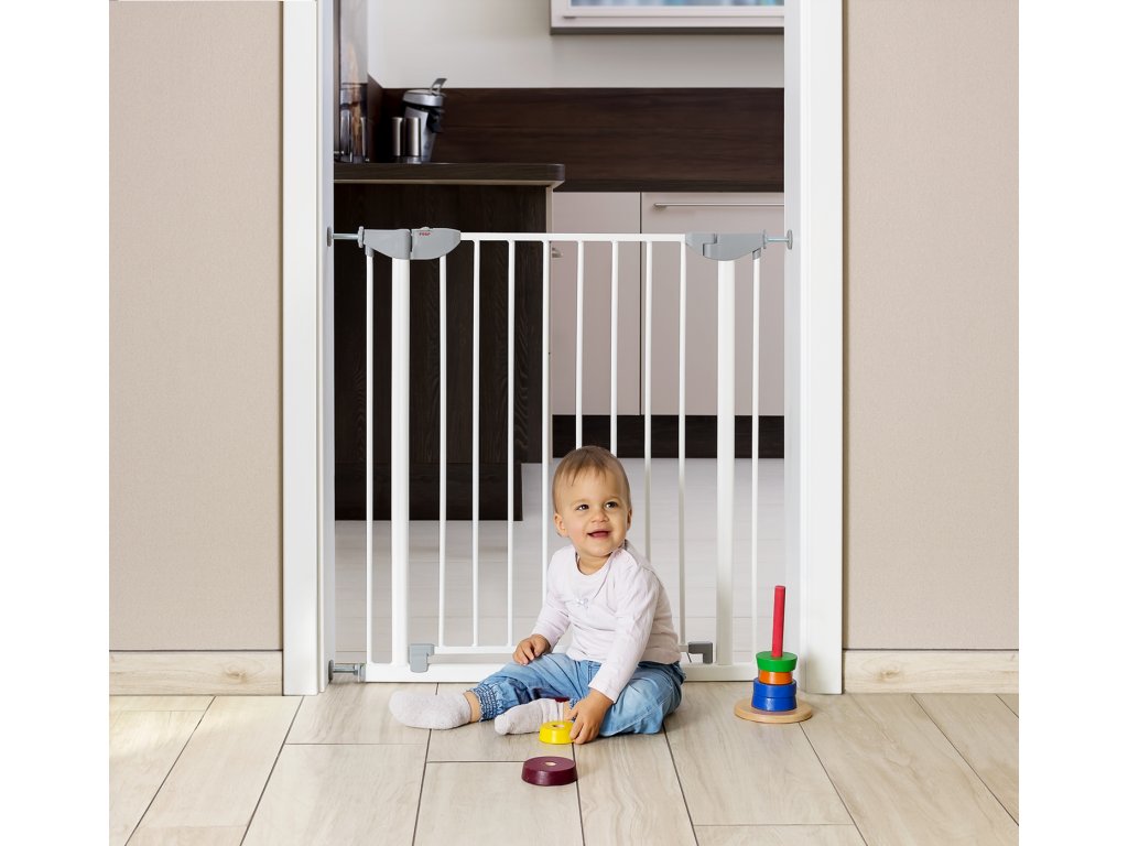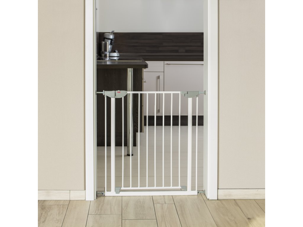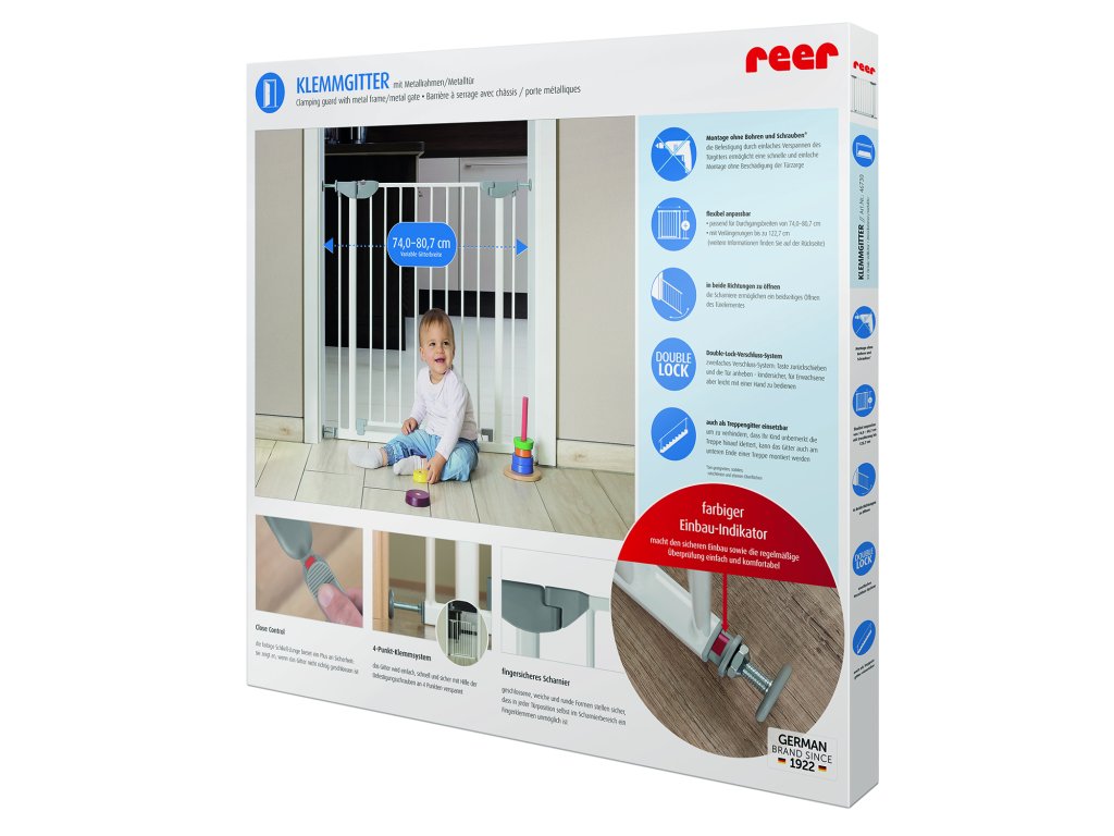 Dětská zábrana s indikátorem správné instalace Stačí jen krátká chvilka nepozornosti a vaše dítě se může ocitnout v potencionálním nebezpečí. Pro ochranu dítěte před zraněním by měly být některé prostory v domě zabezpečeny dětskou zábranou. Tato zábrana je vybavena barevným indikátorem, který usnadňuje její instalaci a kontrolu správného uchycení. Zábranu lze snadno, rychle a bezpečně namontovat ve 4 bodech pomocí upevňovacích šroubů. Panty jsou tvarované tak, aby nedošlo ke skřípnutí prstů a barevně označený zámek upozorňuje na nesprávné zavření zábrany. Vlastnosti: - instalace bez vrtání nebo šroubování (na vhodném povrchu) - vhodné pro průchody o šířce od 75 do 81 cm; s max. 2 prodlouženími až do 95 cm - lze otevírat do obou směrů - Double-Lock zavírací systém - rozměry: šířka: 70 cm; výška: 77 cm - Materiál: kov, plast - Barva: rám a dvířka: bílá, plast: světle šedá - Obsah balení: 1 x upínací zábrana - Velikost balení: 78,5 cm x 74,0 cm x 4,0 cm (š x v x h) Poznámka: Dodržujte přiložené pokyny pro použití a bezpečnost!Doplňkové parametry