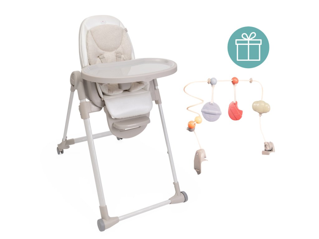 CHICCO Židlička jídelní Polly Armonia - Mother Pearl + Hrazdička Rainbow