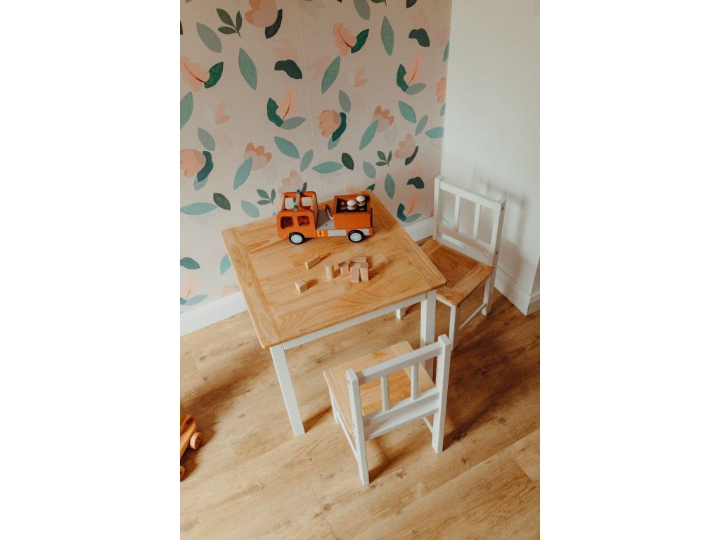 Dětský nábytek, stoleček + 2 židličkyS tímto dětským nábytkem se budou vaše děti cítit jako dospělé. Nábytek je stabilní a vysoce kvalitní. Ideální pro hraní, malování a jídlo. Vaše děti si tak užijí spoustu zábavy se svými sourozenci či kamarády. Podrobnosti:- Max. nosnost: 40 kg- Materiál: dřevo- Rozměry stolu: 56 x 56 x 48,5 cm- Výška židle: 26 cm- Barva: bílá, přírodníDoplňkové parametry