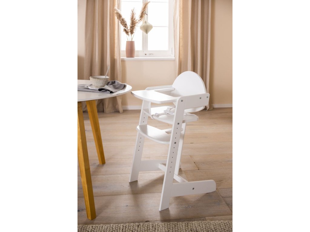 Židle Filou UpDětská židlička z masivního dřeva, vč. jídelního a hracího pultu, roste s vaším dítětem. Díky nosnosti 85 kg ji lze využívat od batolete až po dospívání. Extra vysoké opěradlo optimálně podpírá záda. Stupátko a sedák lze snadno a rychle nastavit podle potřeb dítěte, pomocí imbusového klíče, který je součástí balení. Bezpečné sezení zaručuje 3bodový bezpečnostní pás, jídelní a hrací pult, který lze v případě potřeby odstranit. Redukce sedáku nebo podsedáku je k dispozici samostatně. Podrobnosti:- Doporučení: od 6 měsíců- Max. nosnost: 85 kg- vč. jídelní a hrací desky- 3bodový bezpečnostní pás- Barva: bíláDoplňkové parametry