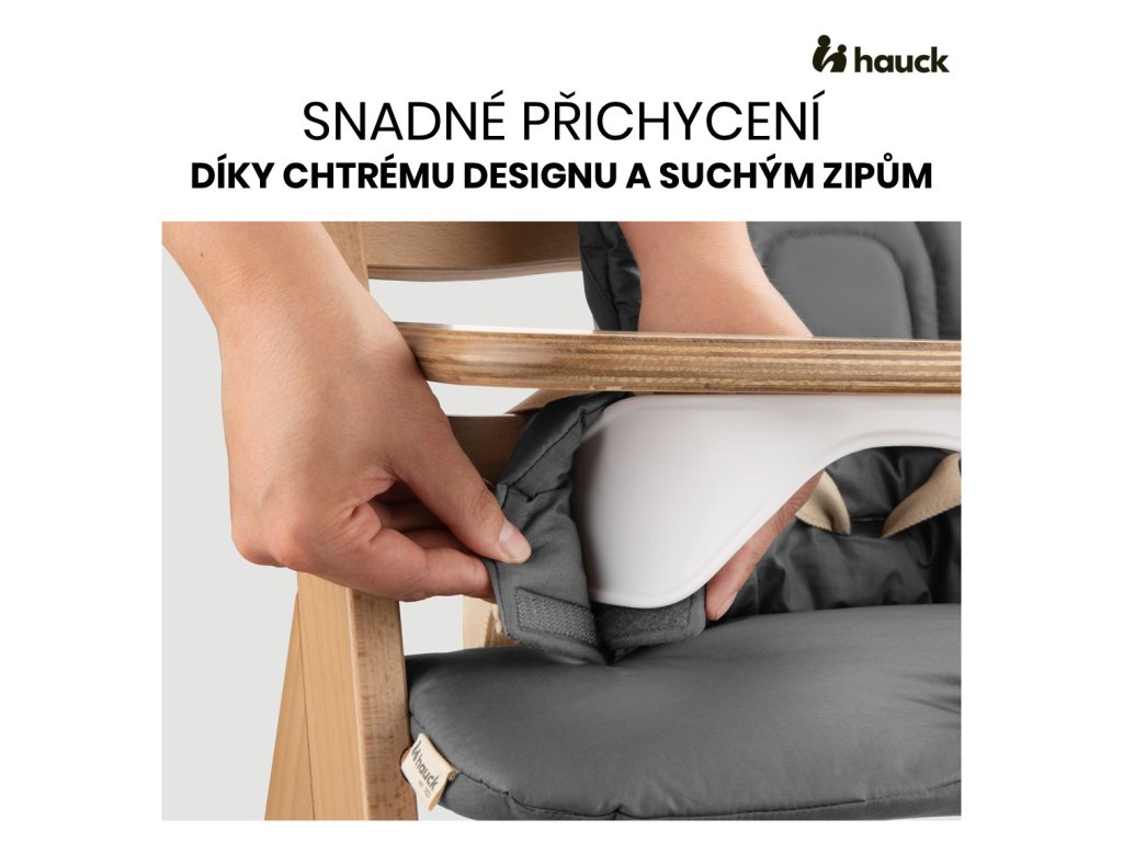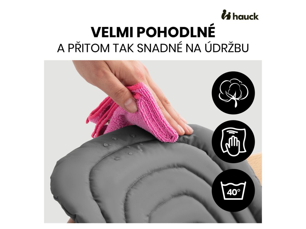POLSTROVÁNÍ NA ŽIDLIČKUPOLSTROVÁNÍ NA SEDÁTKO A DŘEVĚNÉ ŽIDLIČKY HAUCK< 2v1: NA SEDÁTKO A VYSOKOU ŽIDLIČKU< POLSTROVANÉ ZE VŠECH STRAN< SNADNÁ A RYCHLÁ INSTALACEParametry // Hmotnost produktu:Čistá hmotnost produktu / 0,22 kgHmotnost s balením / 0,435 kgRozměry (cm):Rozměry po postavení /46,5 x 34,5 / 21 x 11,5 / 45,5 x 24Rozměry / opěrka zad: 46,5 x 34,5 x 1,5 cmRozměr / sedátko: 45,5 x 24 x 2,0 cmRozměr balení: 25 x 5,5 x 43,5 cmVěk: od 6 měsíců2-v-1 // NA SEDÁTKO A DŘEVĚNÉ ŽIDLIČKY HAUCKHledáte dokonalé polstrování na židličku svého děťátka? Toto nové polstrování lze použít na sedátko nebo přímo na dřevěnou židličku Alpha+, Beta+ a na židličku Arketa.KOMPATIBILNÍ S BEZPEČNOSNTÍMI PÁSY // Všechny dřevěné dětské židličky Hauck jsou vybaveny mezi-nožním a 5bodovým bezpečnostním pásem, který je plně kompatibilní s polstrováním sedátka. Aby bylo vaše děťátko v bezpečí v každém věku.OTESTOVANÁ KVALITA // Pro vaše maličké pouze to nejlepší? Samozřejmě! Polstrování je certifikováno OEKO-TEX® STANDARD 100. Můžete se tedy spolehnout, že bylo důkladně otestováno na přítomnost škodlivých látek.SKUTEČNĚ POHODLNÉ A PŘITOM TAK SNADNÉ NA ÚDRŽBU // Robustní polstrování na sedátko z bavlněného materiálu je velmi pohodlné, díky povrchové úpravě proti nečistotám se snadno čistí pomocí vlhkého hadříku nebo můžete polstrování na sedátko jednoduše vyprat v pračce.POLSTROVANÉ ZE VŠECH STRAN // V pohodlíčku: sedátko je polstrované ze všech stran, pokryje jak opěrku, tak sedátko židličky a při použití pultu či zábrany kryje i mezi-nožní pás.VYSOKÁ KVALITA A STYL // Máte rádi styl? Toto polstrování na sedátko s výrazným prošíváním dokonale lahodí oku.SNADNÁ A RYCHLÁ INSTALACE // Díky praktickému designu a suchým zipům sedátko rychle a snadno nasadíte na dětskou židličku či sedátko a stejně rychle jej opět sundáte.UPOZORNĚNÍ: NIKDY nenechávejte dítě bez dozoru. Udržujte mimo dosah tepelných zdrojů. Ujistěte se, zda nehrozí, aby se zipy, patentky, poutka aj. části nedostaly do dětských úst a že žádná část produktu nezakrývá obličej dítěte, hrozí nebezpečí udušení. Nepoužívejte výrobek jiným způsobem, než pro který byl navržen a který je popsán v přiložených informacích. CZ) DŮLEŽITÉ: PŘED POUŽITÍM SI POZORNĚ PŘEČTĚTE PŘILOŽENÉ INFORMACE K POUŽITÍ, ABYSTE SE VYHNULI MOŽNÝM NEBEZPEČÍM PŘI POUŽÍVÁNÍ VÝROBKU A USCHOVEJTE JE PRO PŘÍPADNÉ DALŠÍ POUŽITÍ.Distributor pro CZ&SK / Distribútor pre CZ&SK: Bohemia Baby s.r.o., Lidická 481, 273 51 Unhošť, email: sales@bohemiababy.cz / www.bohemiababy.cz / www.b2b.bohemiababy.cz / www.bohemiababyshop.czVýrobce / Výrobca: hauck GmbH & Co. KG, Frohnlacher Str. 8, 96242 Sonnefeld, Germany, mail: info@hauck.de / web: www.hauck.deDoplňkové parametry