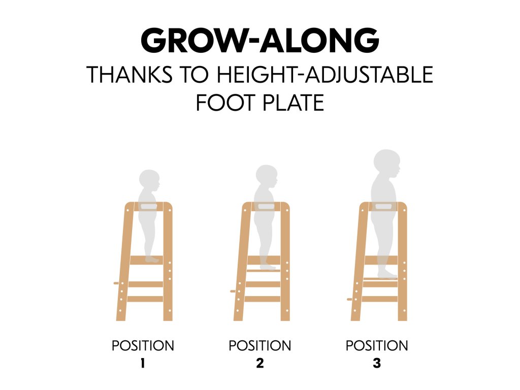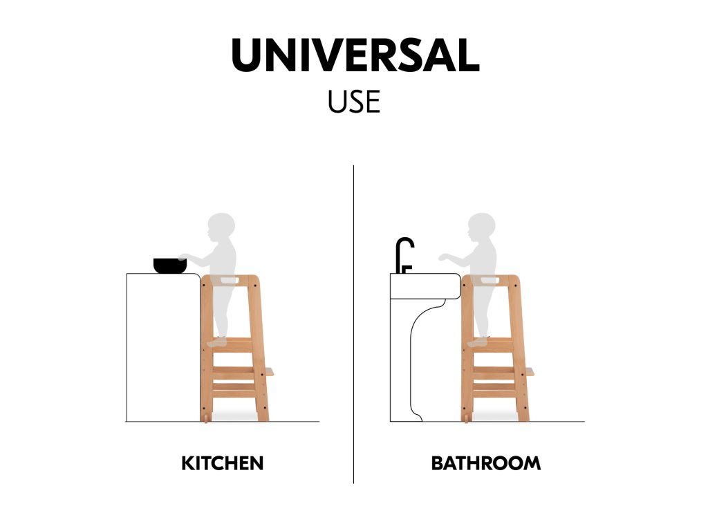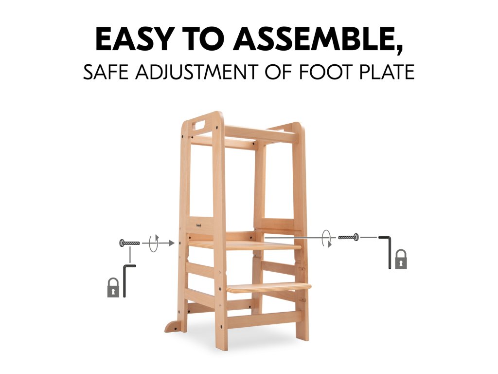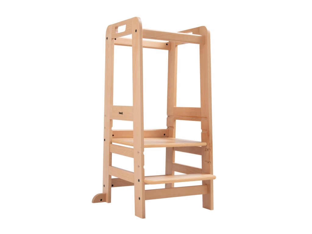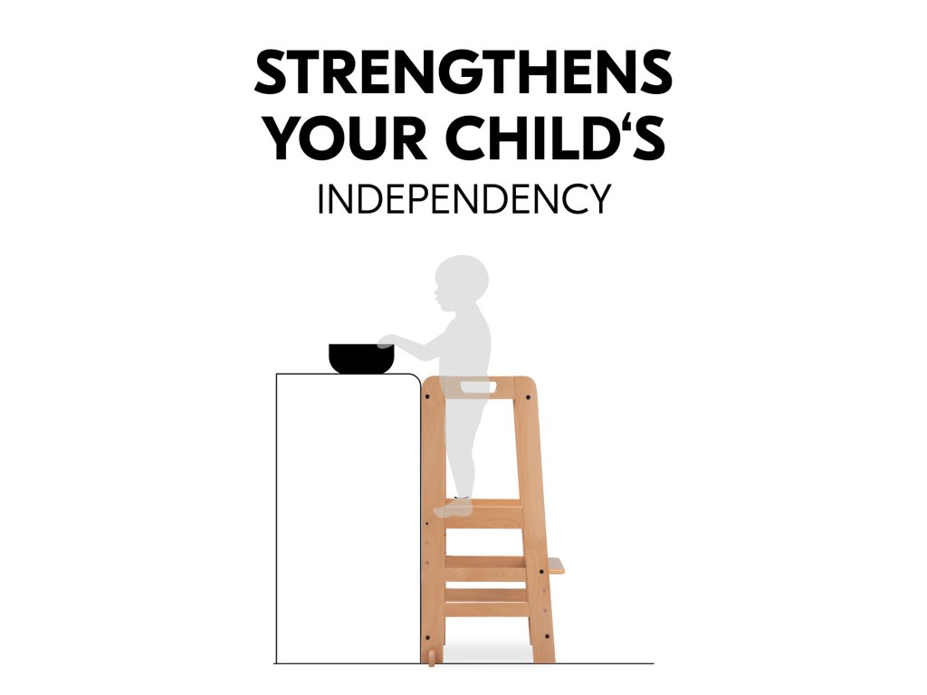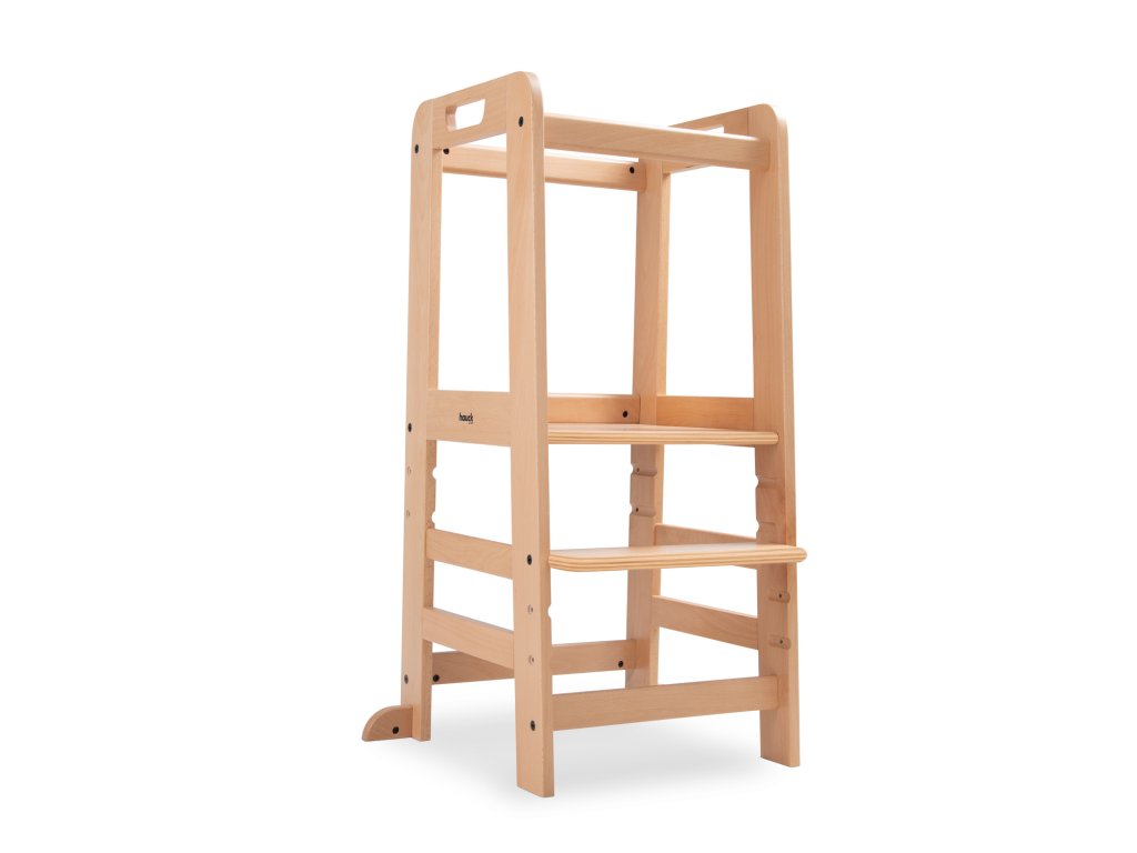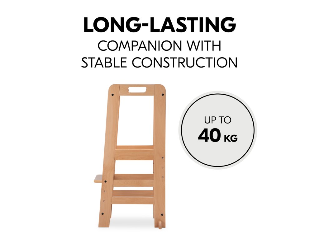 Učící věž Learn N Explore PARAMETRY: Hmotnost produktu: 7,85 kgHmotnost produktu s balením: 8,90 kgRozměry balení: 92,0 x 43,3 x 6,5 cmRozměry po sestavení: d. 54 x š. 46 x v. 90,5 cm Maximální nosnost: 40 kgVhodná pro děti: 1-6 let Nejdůležitější informace o produktu > Udržitelná Montessori učící věž; > Vaše dítě může být součástí rodinných aktivit; > Udržitelnost, schválení TÜV a certifikát FSC®; > Posiluje samostatnost vašeho dítěte; > Možnost růstu díky nastavitelné opěrce pod nohy; > Společník s dlouhodobou životností a stabilní konstrukcí; > Univerzální použití; > Snadná montáž, možnost nastavení výšky; > Design pro váš harmonický interiér; > Rostoucí, stabilní a universální; > Snadná a praktická manipulace v každodenním životě. Learn N Explore – Učící věž pro samostatné objevování Montessori učící věž - Udržitelná, certifikovaná FSC® Díky vyvýšené poloze stupínku se může vaše dítě zapojit do běžných rodinných aktivit a pomáhat vám, bezpečně ve výšce očí. V duchu Montessori "Pomoz mi, abych to dokázal sám" se vaše dítě od útlého věku zapojuje formou hry, např. do vaření nebo pečení, a posiluje tak svou samostatnost, jazykový a sociální rozvoj i sebevědomí. Učící Věž pro batolata hauck má certifikát FSC®, což znamená, že bukové dřevo pochází z lesů s certifikátem FSC a šetrným lesním hospodářstvím. Rostoucí, stabilní a univerzální věž V závislosti na velikosti vašeho dítěte můžete nastavit nožní desku kuchyňského pomocníka do tří různých výšek. Robustní a stabilní konstrukce umožňuje vašemu dítěti používat Montessori věž až do hmotnosti 40 kg, ať už v kuchyni, u jídelního stolu nebo u umyvadla v koupelně. Jednoduchá, praktická a bezpečná manipulace Šrouby a nářadí jsou součástí balení. Plošinu pro nohy lze snadno nastavit pomocí dvou šroubů. Tvar a design dřevěných schůdků je proveden ve stejném vzhledu jako dřevěné židličky hauck, pro váš harmonický interiér. PÉČE & ÚDRŽBA : Čistěte pomocí vlhčeného hadříku Materiál: bukové dřevo: 74 %, železo (šrouby a matice): 3 %, překližka: 23 %Doplňkové parametry