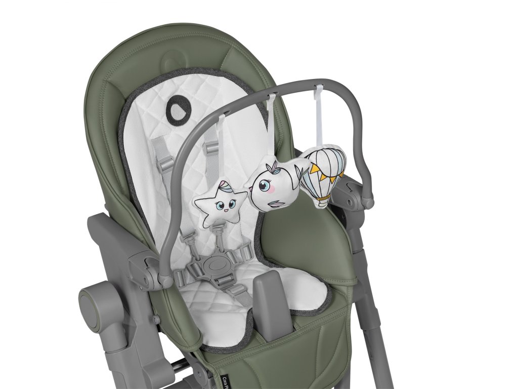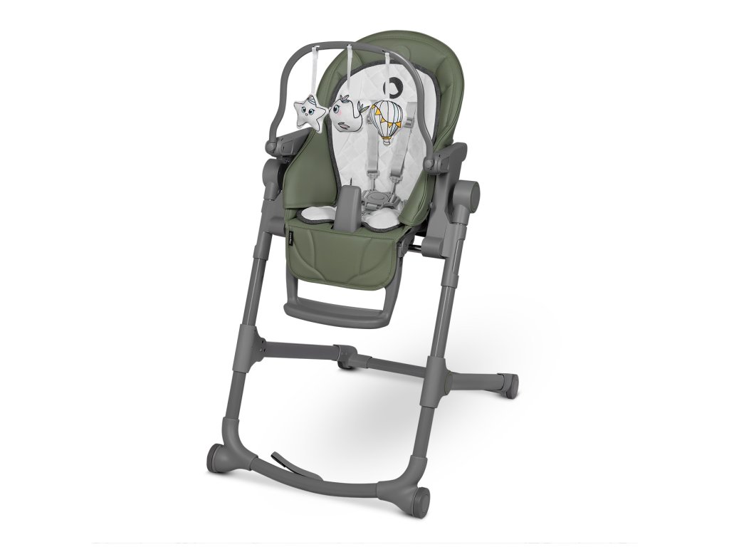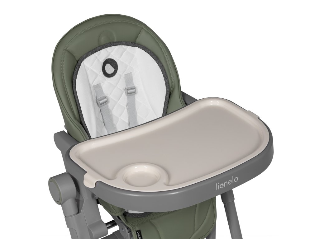 Jídelní židle Lionelo Cora Plus Grey Stone 2 v 1 byla vybavena 5bodovými bezpečnostními pásy. Sklon opěrky nohou a opěradla můžete nastavit výběrem ze tří úrovní. Tác můžete oddálit nebo přiblížit k dítěti, v závislosti na potřebách. V sadě najdete také hrazdičku se třemi senzorickými přívěsky, které dítě úspěšně zaměstnají a podnítí jeho představivost.
