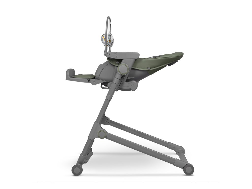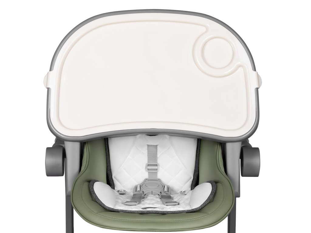 Jsme si vědomi toho, že dítě ulpívá ke svým oblíbeným předmětům. Proto se s naší židlí nebude muset tak rychle rozloučit. Od prvních dnů života bude v ní pohodlně odpočívat jako v lehátku. Pro tuto funkci jsme přidali speciální vložku a ergonomické opěradlo, které můžete sklopit do lehu. To vše zajistí páteři dostatečnou oporu. Když dítě dosáhne hmotnosti 9 kg nebo si začne samo sedat, změníte vaše lehátko na pohodlnou židli s praktickým tácem a začnete budovat společné pouto při jídle.