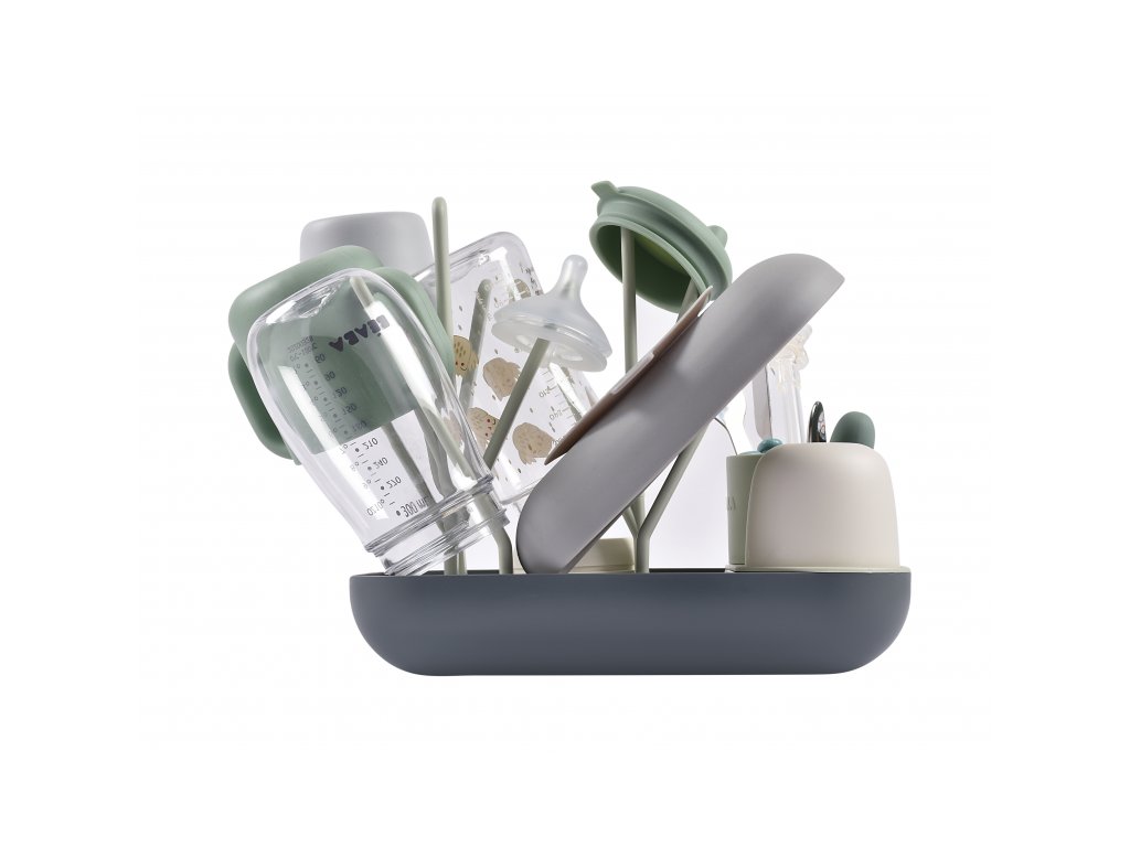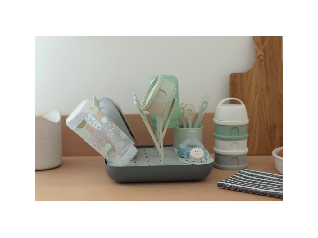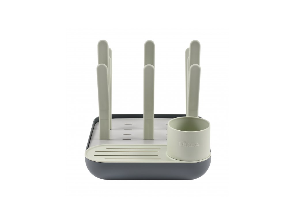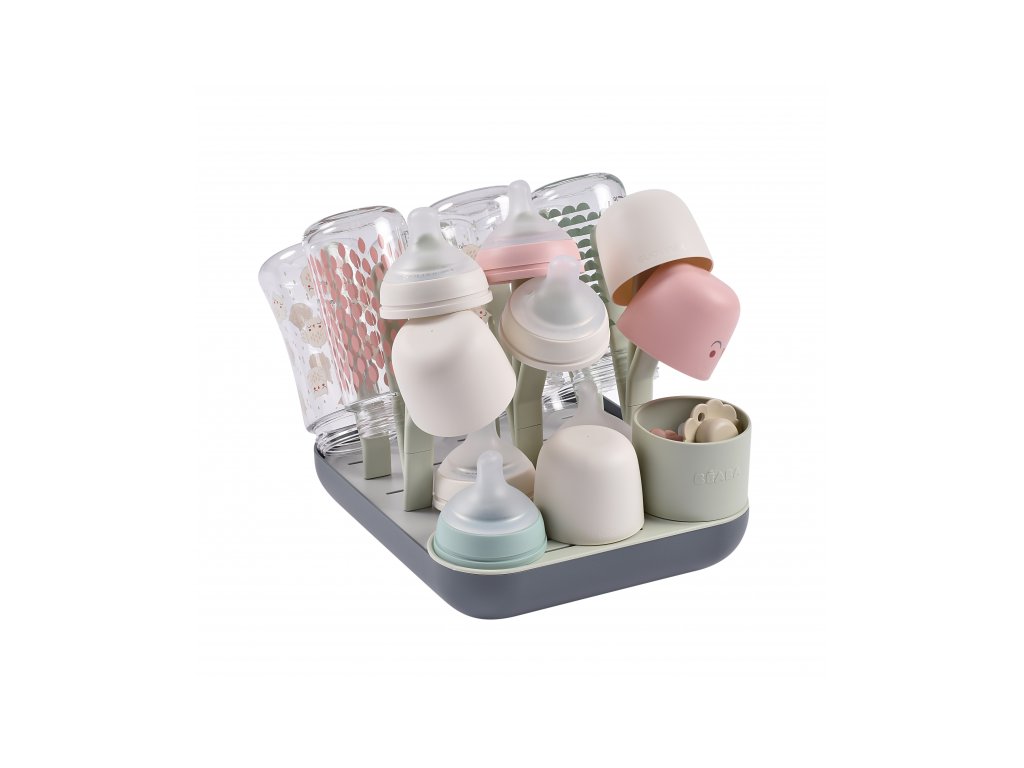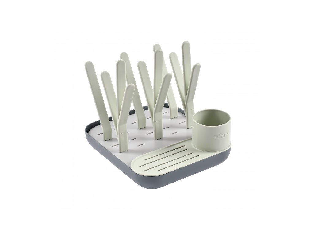 Variabilní stojan Beaba na sušení kojeneckých lahví, hrnků, misek, lžiček a doplňků. Stojan má vyjímatelné držáky a umožňuje tak přizpůsobit jeho uspořádání dle typu a velikosti nádobí, které na stojan potřebujete umístit. Odnímatelná základna usnadňuje údržbu stojanu a zároveň slouží pro uložení jednotlivých součástí stojanu, když jej právě nepoužíváte. Stojan má kapacitu až 6 kojeneckých lahví a jejich příslušenství. Variabilní uspořádání umožňuje jeho použití pro jakékoli dětské nádobí.Doplňkové parametry