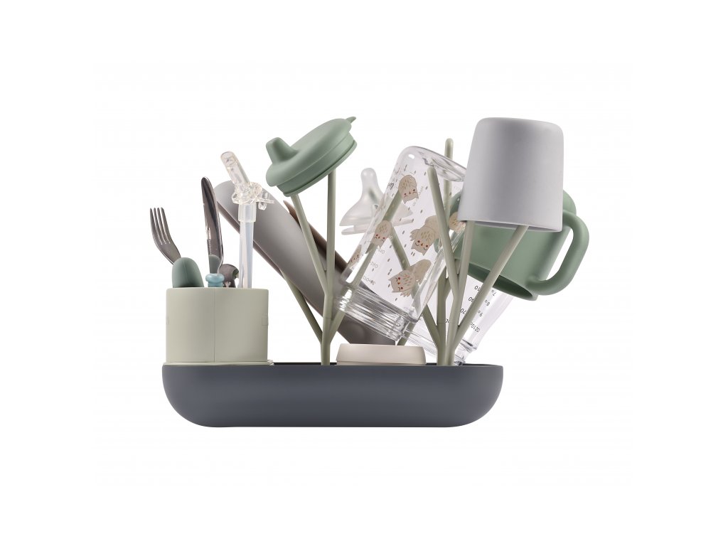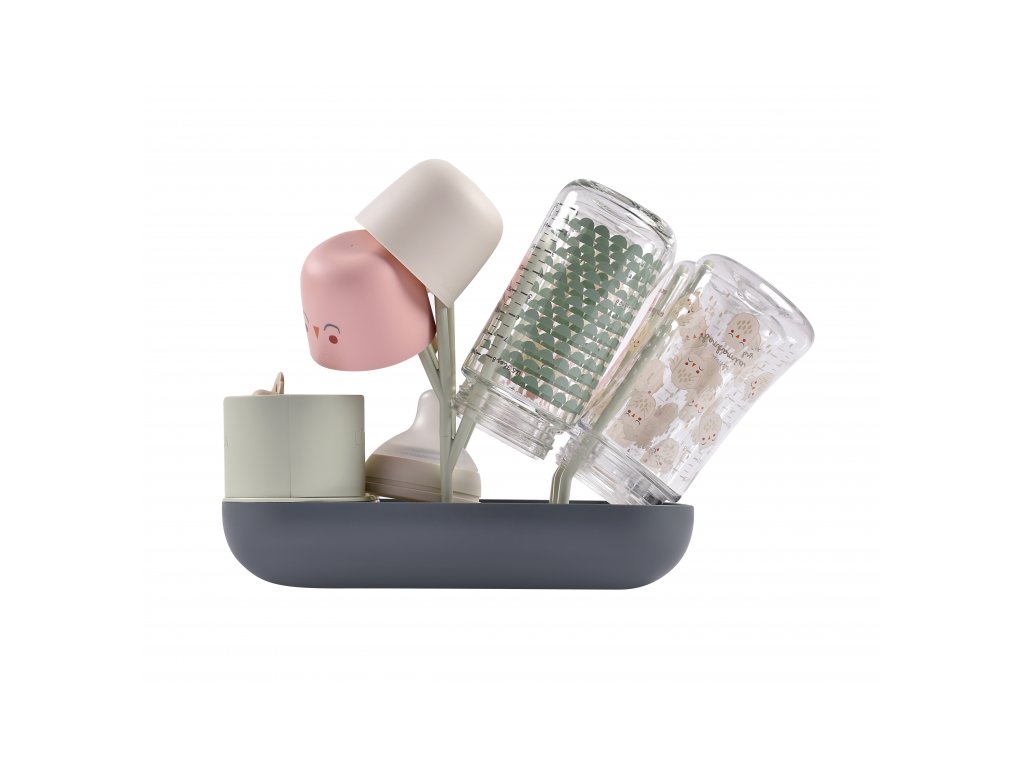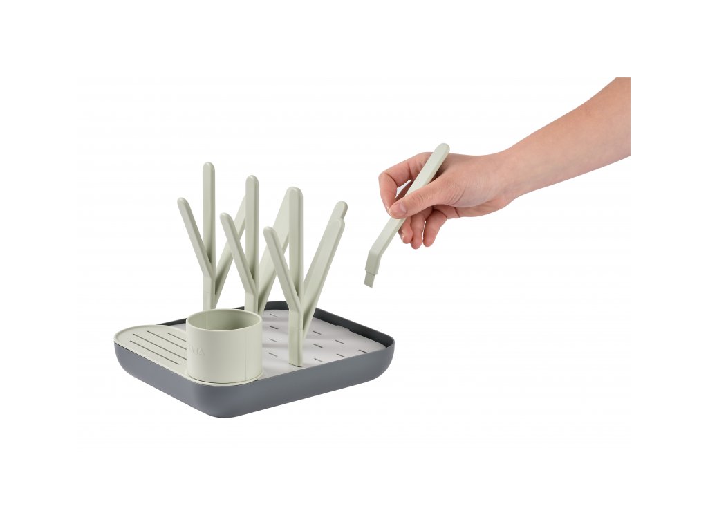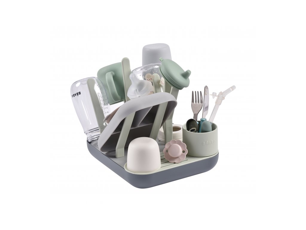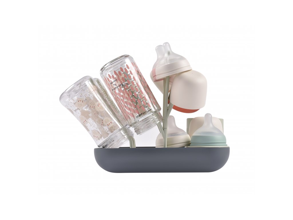 Variabilní stojan Beaba na sušení kojeneckých lahví, hrnků, misek, lžiček a doplňků. Stojan má vyjímatelné držáky a umožňuje tak přizpůsobit jeho uspořádání dle typu a velikosti nádobí, které na stojan potřebujete umístit. Odnímatelná základna usnadňuje údržbu stojanu a zároveň slouží pro uložení jednotlivých součástí stojanu, když jej právě nepoužíváte. Stojan má kapacitu až 6 kojeneckých lahví a jejich příslušenství. Variabilní uspořádání umožňuje jeho použití pro jakékoli dětské nádobí.Doplňkové parametry