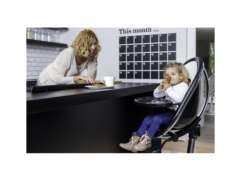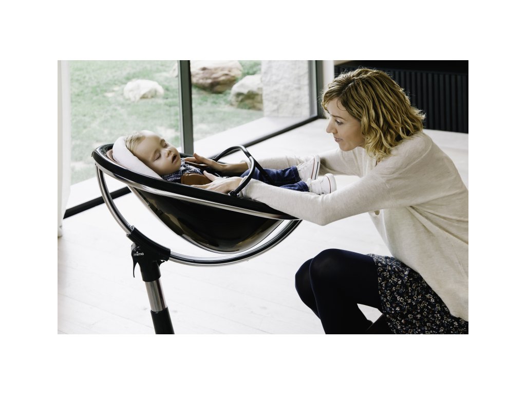Stylová židlička Mima Moon je to pravé pro milovníky soudobého špičkového designu. Svým řešením 3v1 umožní dítěti být již od narození až do školního věku součástí rodinného stolování. Díky různým možnostem náklonu a volitelnému vkládacímu polstrování je vhodná pro miminka od narození. S odnímatelným pultem a opěrkou nohou je použitelná jako židlička na krmení pro batolata od 6 měsíců. Vyjmutím vnitřního sedáku židličku snadno přeměníte v židli pro větší děti, které ji mohou používat samostatně u stolu. Židlička je velmi jednoduše výškově nastavitelná a ve své maximální výšce se hodí i ke kuchyňským barovým pultům. Pevná a stabilní konstrukce je zárukou bezpečí pro dítě. Kolečka Easy-Glide usnadňují přesunování židličky v interiéru. Součástí balení je sedací podložka v hnědé barvě. Samostatně prodávané doplňky vám umožní přizpůsobit židličku věku vašeho dítěte i vašim barevným preferencím: vložka pro miminko s opěrkou hlavy určená pro děti od narození sedací podložka s pásy v různých barvách pro batolata podsedák pro malé děti sada sedacích polštářků v různých barvách pro větší děti Rozměry a hmotnost: Hmotnost židličky: 10,8 kg Nosnost židličky: 45 kg Základna: 55 × 66 cm Max. výška k hornímu okraji židličky: 119,5 cm Výška pultu: od 71 do 89 cmDoplňkové parametry